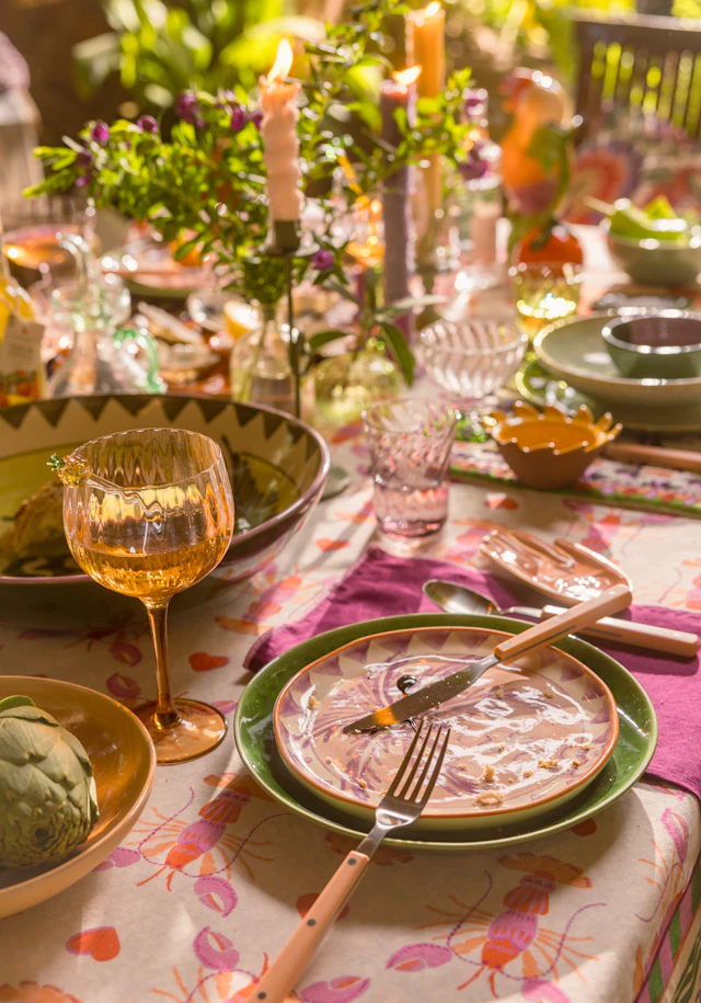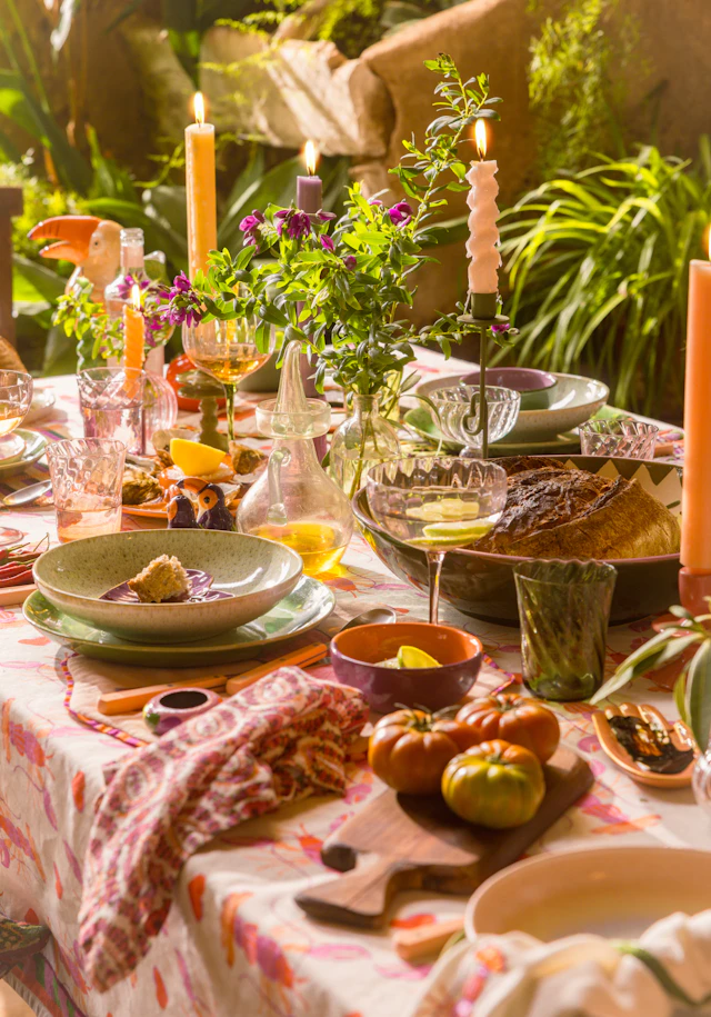 Nicht nur in der Mode, sondern auch am Tisch spielt Kontrast die Hauptrolle. Bunte Prints, reiche Texturen und weltliche Einflüsse vereinen sich zu einer eklektischen Mischung. Kombinieren Sie verspielte Muster mit leuchtenden Akzenten und schaffen Sie eine Tischatmosphäre, die zu langen Abenden einlädt.