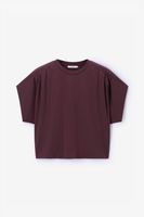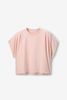 Sommerliches T-Shirt in hellem Orange der Marke Sissy-Boy. Das boxy Shirt hat einen runden Ausschnitt, einen Oversize-Schnitt und üppige Falten an den Schultern. Material: 100% Baumwolle.