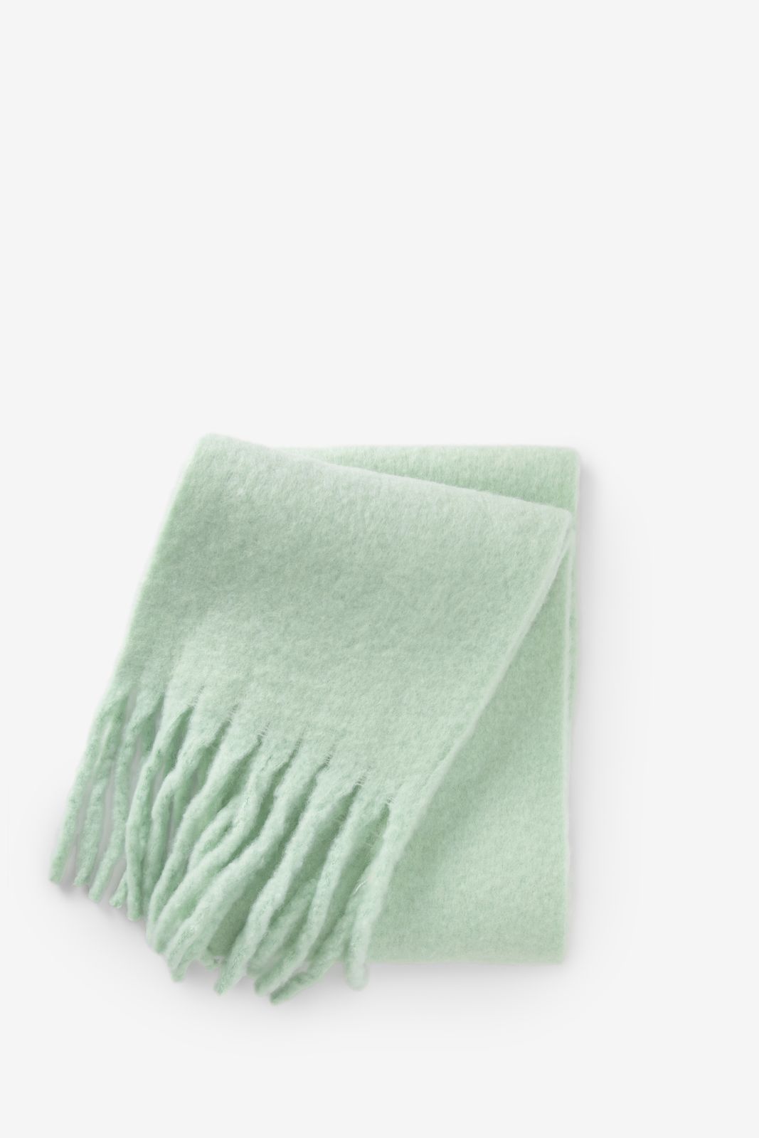 Hellgrüner Fransenschal der Marke Sissy-Boy. Der Schal ist ein frischer Hingucker. Maβe: 200x29 cm. Länge der Fransen: 15 cm. Material: 70% Polyester, 30% Wolle.
