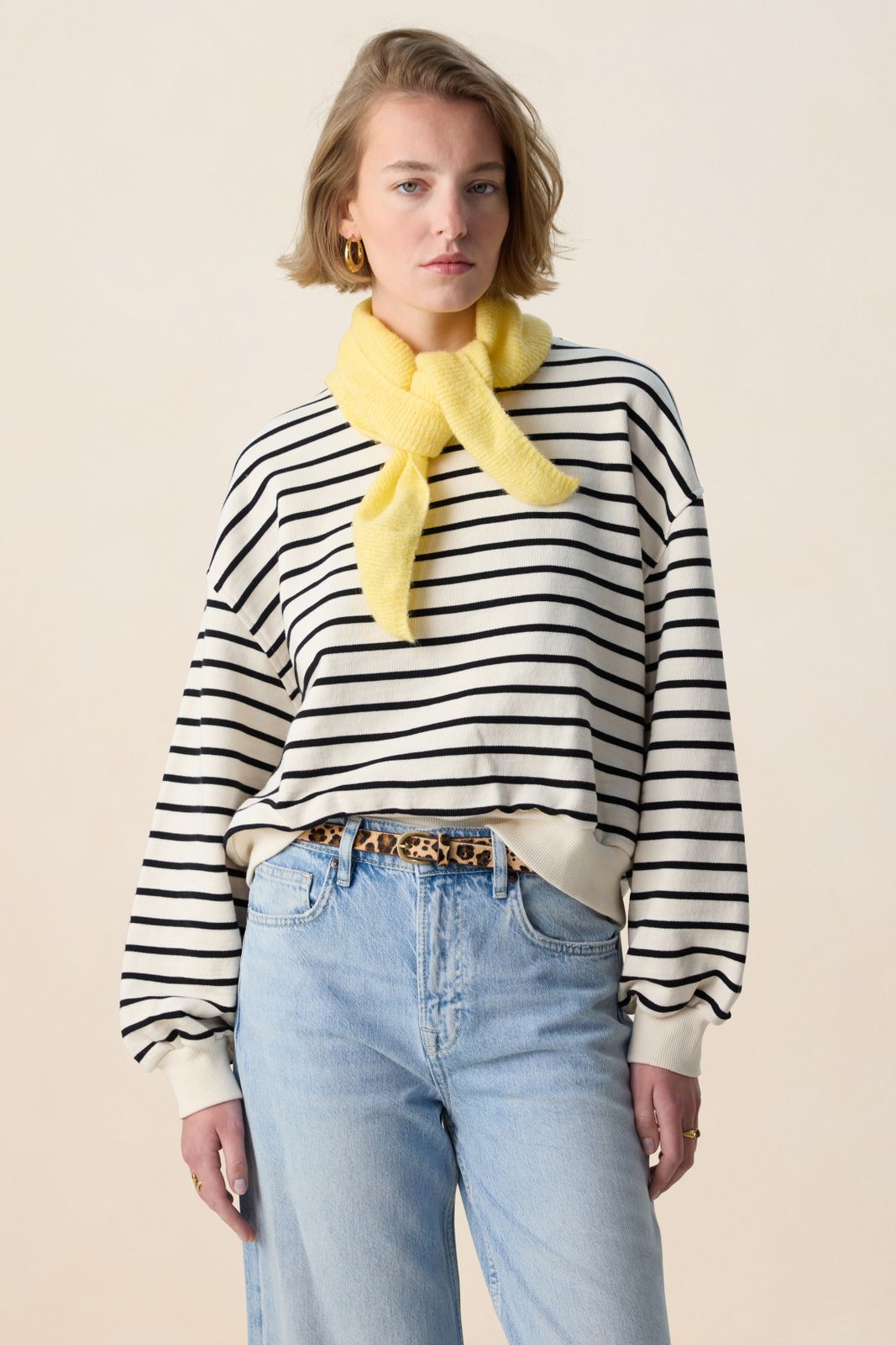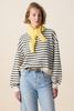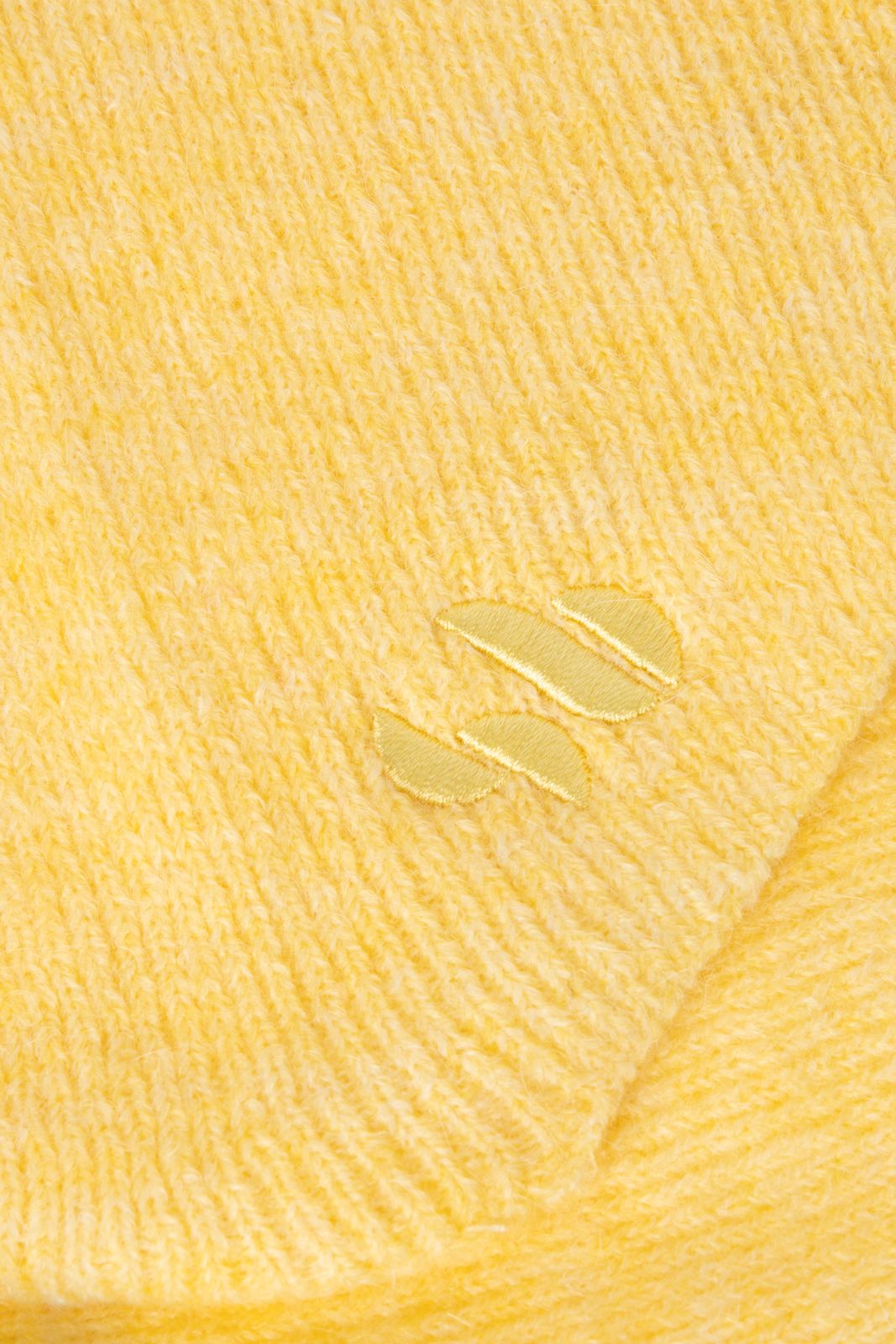 Gestricktes gelbes Bandana-Tuch der Marke Sissy-Boy. Der Schal hat eine dreieckige Form und ist auf einer Spitze mit einem Logo bestickt. Maβe: 100x31 cm. Material: 48% Acryl, 26% Nylon, 15% Wolle, 8% Alpakawolle, 3% Elasthan.