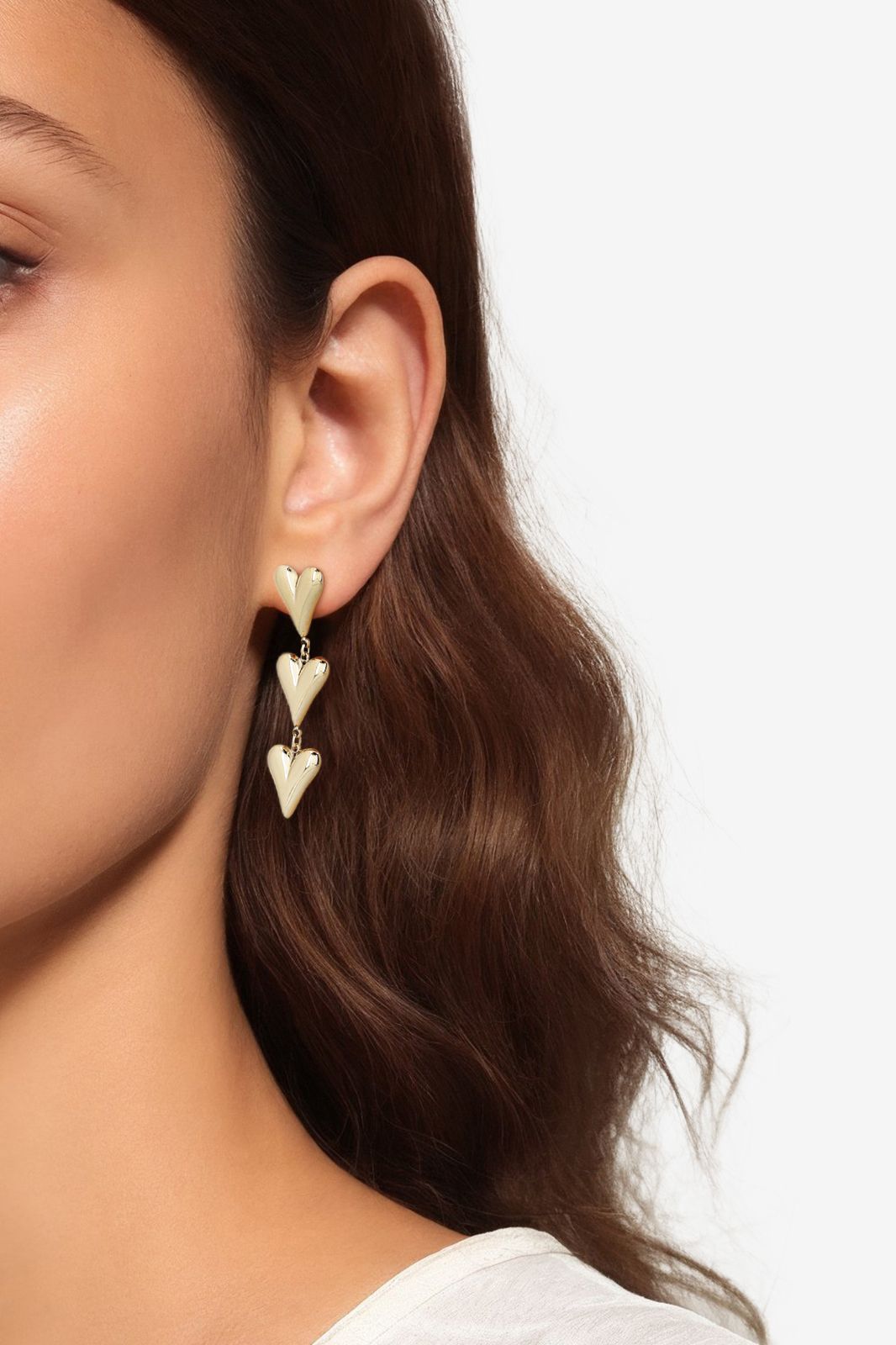 Gold-plated Herz-Ohrringe der Marke Sissy-Boy. Die langen Ohrringe haben einen Steckverschluss und sind aus Edelstahl gearbeitet. So pflegst du deinen Schmuck von Sissy-Boy richtig: Vermeide den Kontakt mit Kosmetika wie Parfüm, Haarspray, Make-up Entferner, Nagellackentferner, Körperölen, Sonnencreme, Handgel und Deo. Nimm deinen Schmuck beim Duschen, Baden oder Schwimmen ab. Vor allem Chlor kann den Schmuck dauerhaft schädigen oder zu Verfärbungen führen.