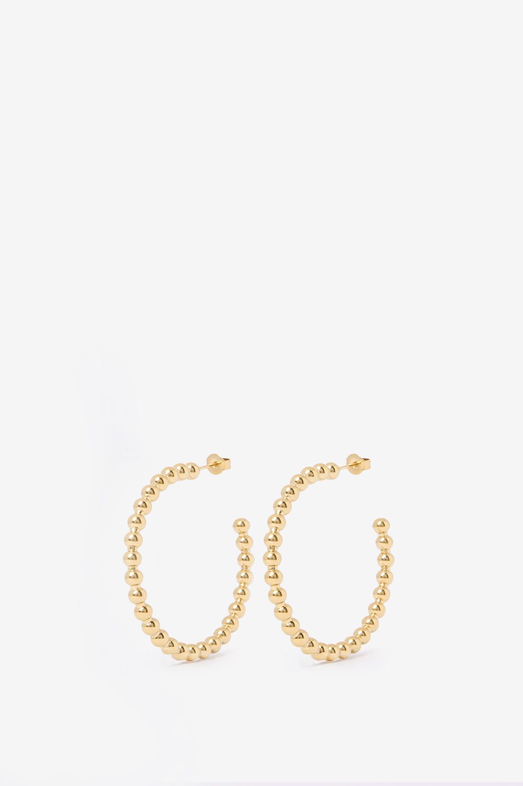 Gold-plated Ohrringe mit Kügelchen der Marke Sissy-Boy. Die goldfarbenen Creolen sind dank der Struktur ein wunderschöner Eyecatcher. So pflegst du deinen Schmuck von Sissy-Boy richtig: Vermeide den Kontakt mit Kosmetika wie Parfüm, Haarspray, Make-up Entferner, Nagellackentferner, Körperölen, Sonnencreme, Handgel und Deo. Nimm deinen Schmuck beim Duschen, Baden oder Schwimmen ab. Vor allem Chlor kann den Schmuck dauerhaft schädigen oder zu Verfärbungen führen. Maβe: 4x4 cm. Material: 100% Edelstahl.