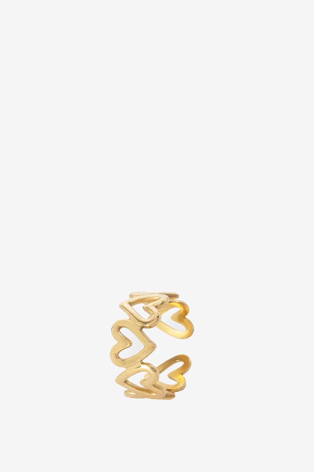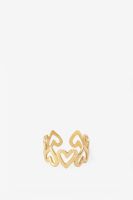 Gold-plated Ring mit kleinen Herzen der Marke Sissy-Boy. Der ausgefallene Ring ist aus Edelstahl gearbeitet und mit einer dünnen Schicht Gold versehen. So pflegst du deinen Schmuck von Sissy-Boy richtig: Vermeide den Kontakt mit Kosmetika wie Parfüm, Haarspray, Make-up Entferner, Nagellackentferner, Körperölen, Sonnencreme, Handgel und Deo. Nimm deinen Schmuck beim Duschen, Baden oder Schwimmen ab. Vor allem Chlor kann den Schmuck dauerhaft schädigen oder zu Verfärbungen führen. Maβe: 2x2 cm.