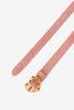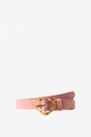 Rosafarbener Gürtel mit herzförmiger Schnalle der Marke Sissy-Boy. Die Schnalle des Veloursleder-Gürtels ist aus Resin gefertigt. Material: 100% Veloursleder.