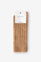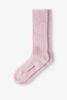 Rosafarbene Kuschelsocken der Marke Sissy-Boy. Die Socken sind wunderbar flauschig und haben ein stylishes Rippmuster. Material: 28% Alpaka, 10% Wolle, 30% Polyacryl, 30% Polyamid, 1% Elasthan.
