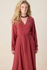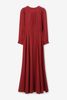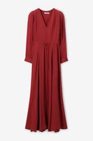 Rotes Maxi-Kleid der Marke Sissy-Boy. Das Kleid hat einen V-Ausschnitt, einen elastischen Bund mit Kordelzug und feminine Ballonärmel. Unser Model ist 1,71 m groß und trägt Größe S. Material: 100% Viskose.