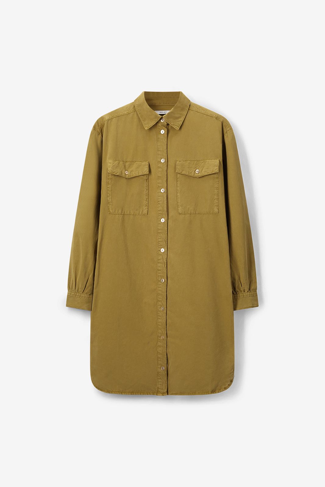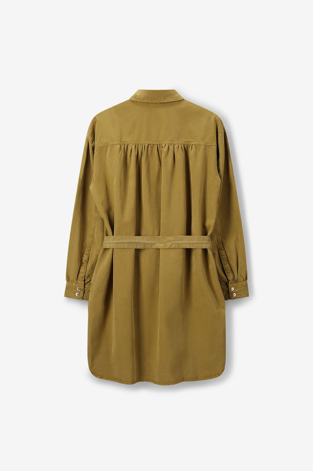 Hellgrünes Kleid mit Gürtel der Marke Sissy-Boy. Das Kleid hat einen klassischen Kragen, lange Ärmel, aufgenähte Brusttaschen, Knöpfe auf der Vorderseite und einen Gürtel. Material: 53% Baumwolle, 47% Lyocell.