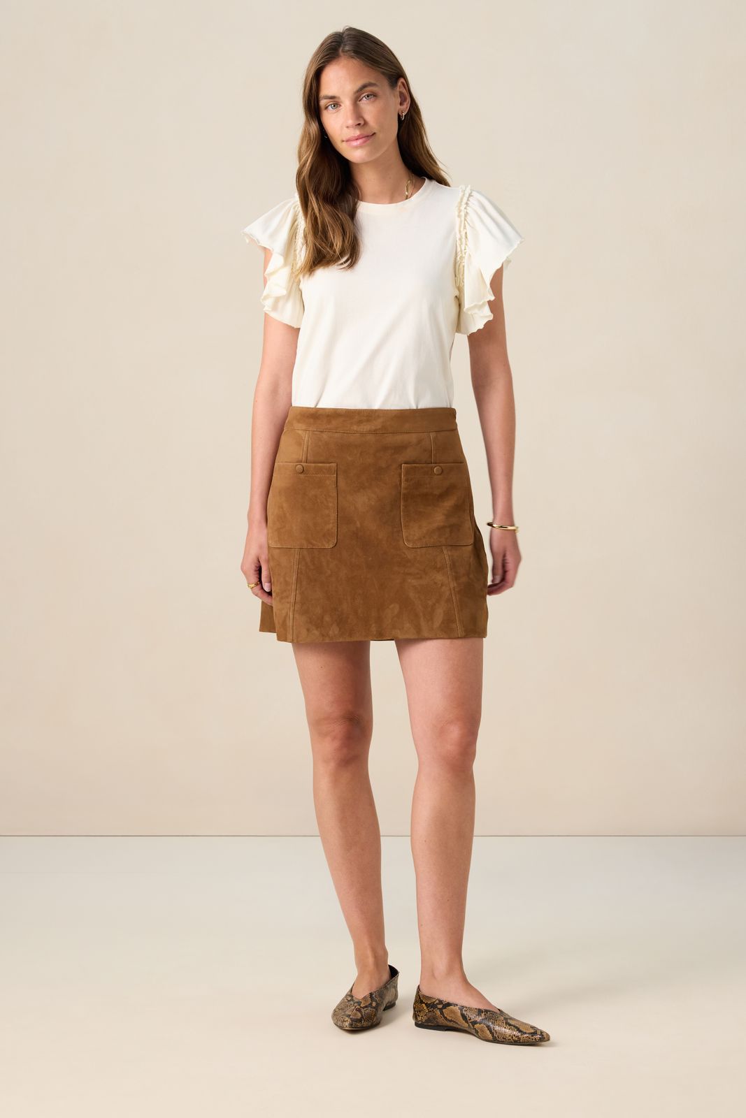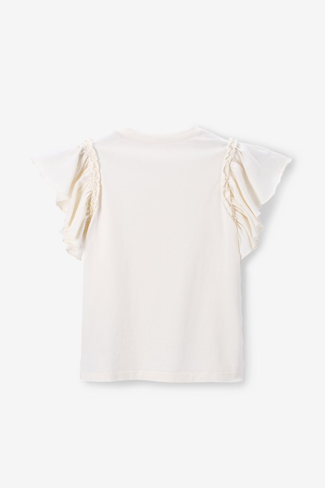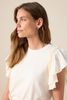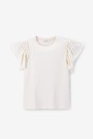 Süßes weißes Top mit Rüschen-Ärmeln der Marke Sissy-Boy. Das T-Shirt hat einen runden Ausschnitt, einen regulären Schnitt und verspielte Volants. Material: 100% Baumwolle.