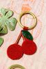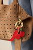 Roter Taschen-Charm der Marke Sissy-Boy. Der Anhänger hat die Form einer kleinen Kirsche und ist mit Perlen bestickt. Material: 60% Glas, 20% Messing, 20% Polyester.