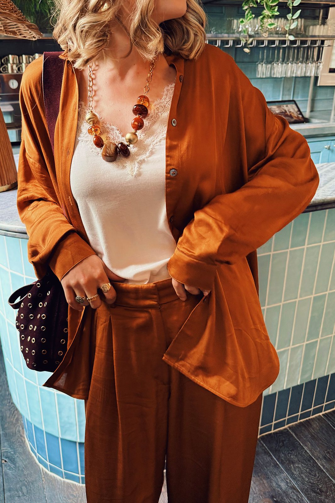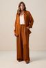 Weite braune Hose der Marke Sissy-Boy. Die Hose hat zwei seitliche Taschen, Paspeltaschen auf der Rückseite, Bundfalten auf der Vorderseite und wird mit einem Knopf und einem Reißverschluss geschlossen. Material: 100% Viskose.