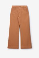 Hellbraune Jeans mit weitem Bein der Marke Sissy-Boy. Die Hose hat ein 4-Pocket-Modell, eine hohe Taille, aufgenähte Taschen und wird mit einem Knopf und einem Reißverschluss geschlossen. Material: 100% Baumwolle.