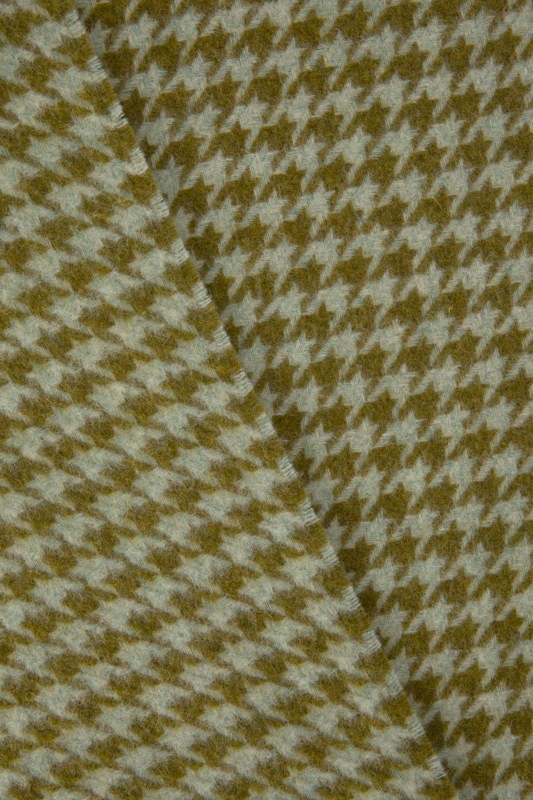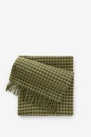 Dunkelgrüner Wollschal mit Hahnentrittmuster der Marke Sissy-Boy. Der Schal hat Fransen. Material: 100% Wolle.