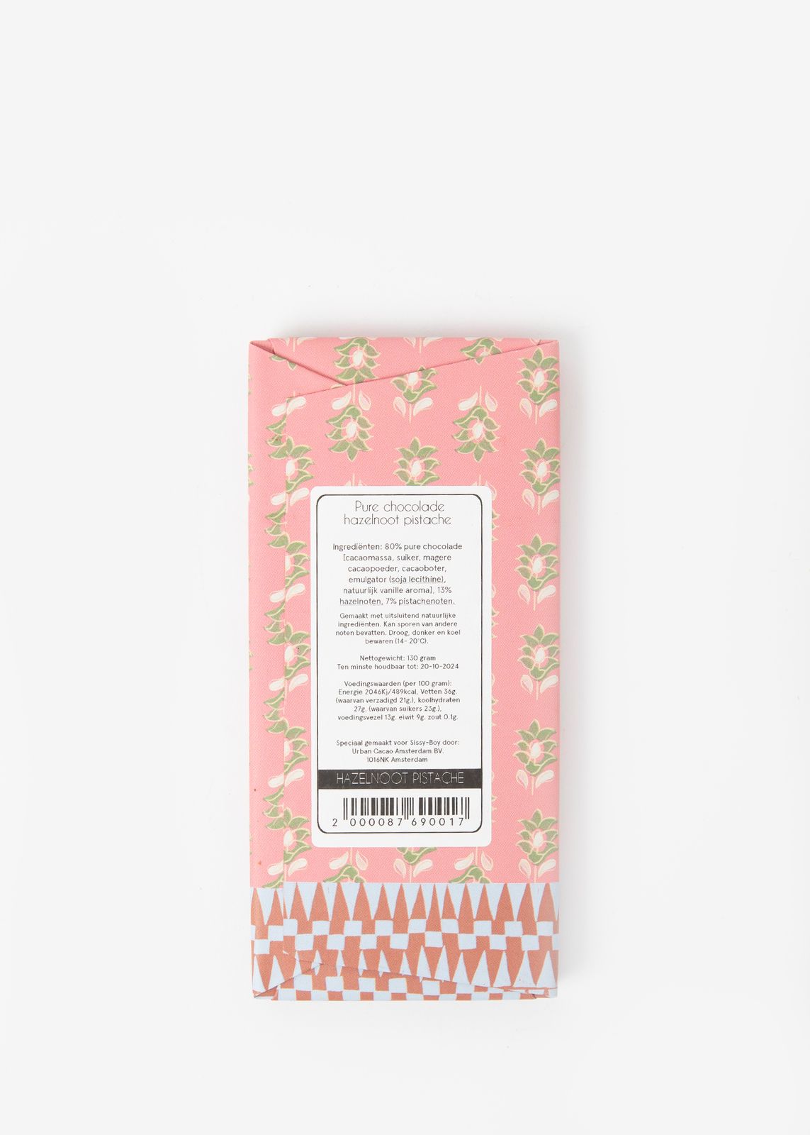 Ein echter Gaumenschmaus für alle Schokoladenliebhaber unter uns! Die Zartbitterschokolade "Haselnuss Pistazie" der Marke Sissy-Boy. Die Schokolade für diesen Riegel wird aus Kakaobohnen aus der ganzen Welt hergestellt. Für die Produktion der Riegel werden ausschließlich die qualitativ hochwertigsten Zutaten verwendet. Wusstest du, dass unsere Schokolade eine farbenfrohe neue Verpackung erhalten hat? Das neue Design macht die Schokolade zum echten Fest für die Augen! Ein tolles Geschenk. Inhalt: 130 g.