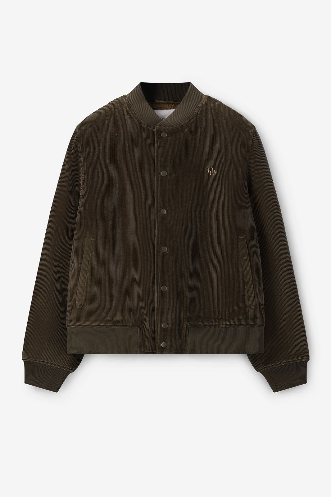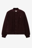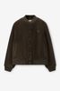 Dunkelgrüne Bomberjacke aus Cord der Marke Sissy-Boy. Die Jacke hat einen runden Ausschnitt, Druckknöpfe, Rippbündchen und ist auf der Vorderseite mit einer kleinen Logo-Stickerei versehen. Material: 100% Baumwolle.
