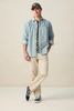 Beigefarbene Chino mit mittelhoher Taille der Marke Sissy-Boy. Die Hose wird mit einem Knopf und einem Reißverschluss geschlossen, hat zwei Seitentaschen und zwei Paspeltaschen auf der Rückseite. Unser Model ist 1,87 m groß und trägt Größe 30. Material: 100% Baumwolle.
