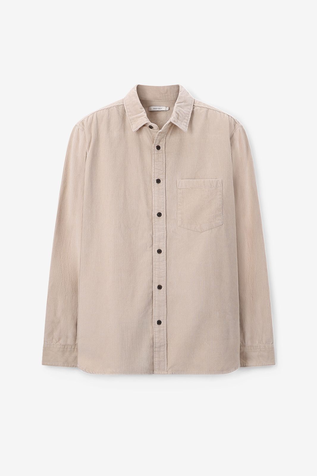 Beigefarbenes Cordhemd der Marke Sissy-Boy. Das Hemd hat eine Knopfleiste, einen Kragen und eine reguläre Passform. Material: 100% Baumwolle.