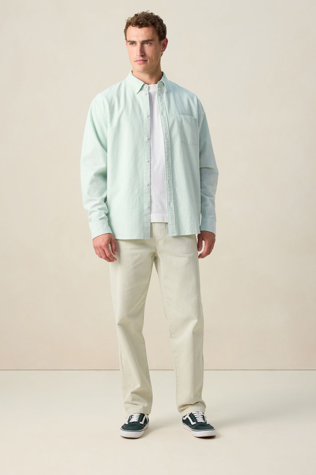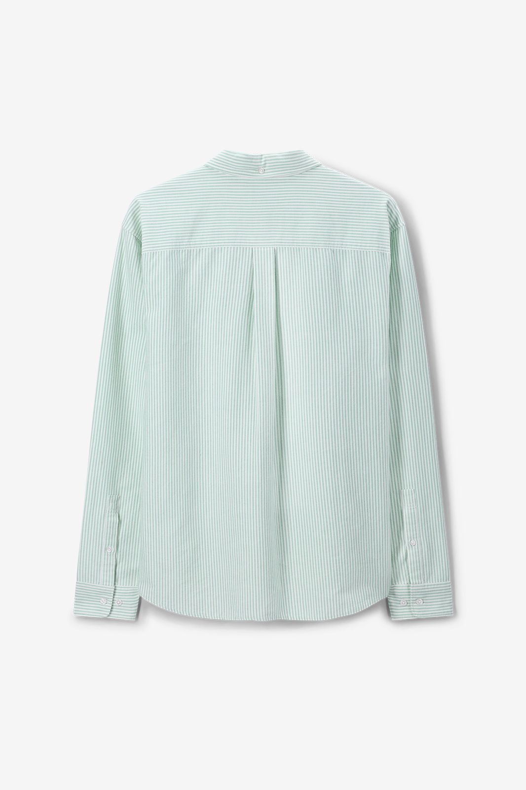 Hellgrünes Hemd mit Streifen der Marke Sissy-Boy. Das Hemd hat eine Brusttasche, einen Kragen, eine Knopfleiste und einen geraden Schnitt. Unser Model ist 1,87 m groß und trägt Größe M. Material: 100% Baumwolle.