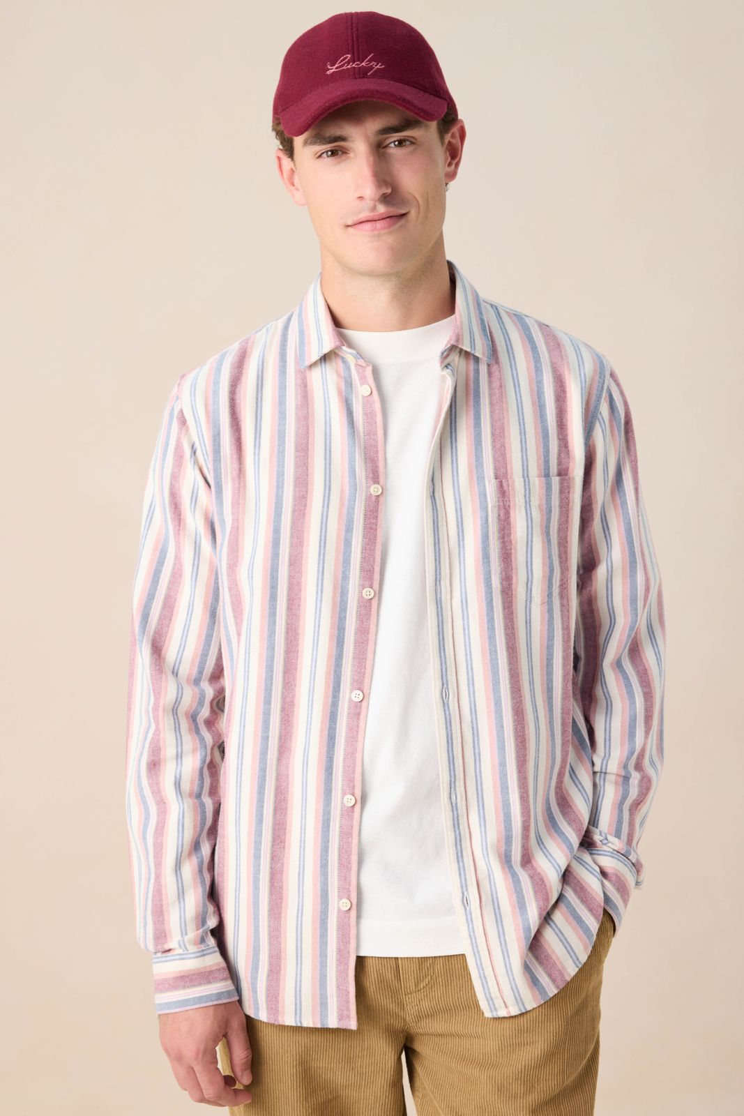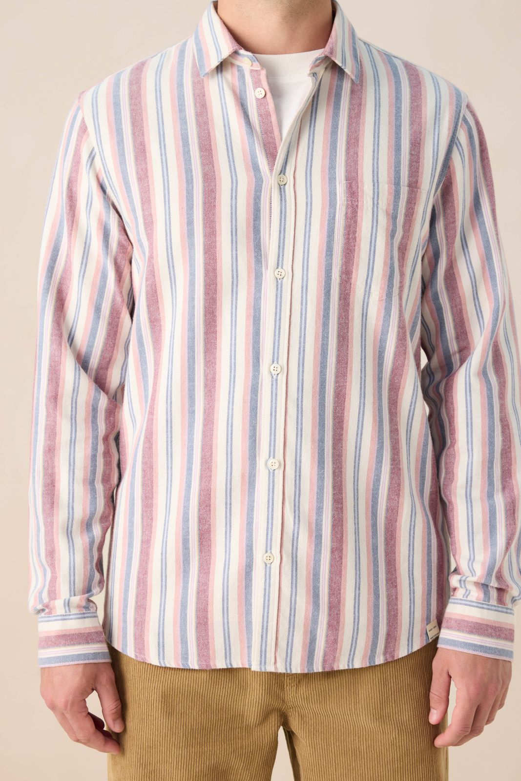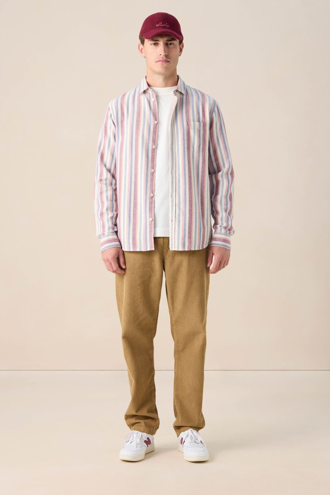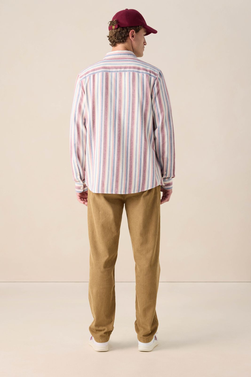 Rot gestreiftes Hemd der Marke Sissy-Boy. Das Hemd hat einen klassischen Kragen, eine Brusttasche, eine Knopfleiste, einen geraden Schnitt und farbige Streifen. Material: 100% Baumwolle.