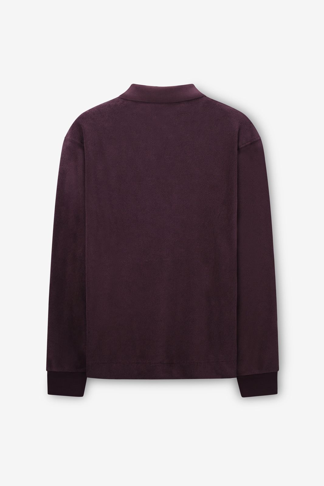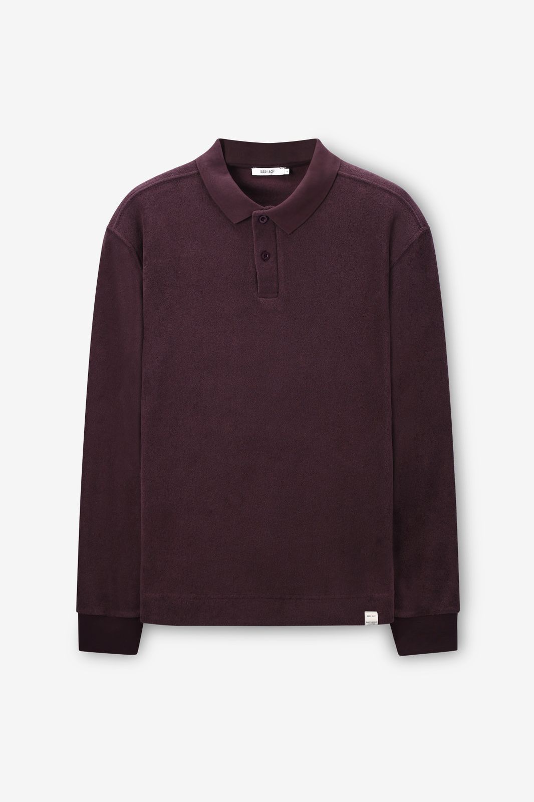 Brauner Nicki-Sweater der Marke Sissy-Boy. Der Pullover hat einen Polokragen, eine Knopfleiste und eine reguläre Passform. Material: 80% Baumwolle, 20% Polyester.
