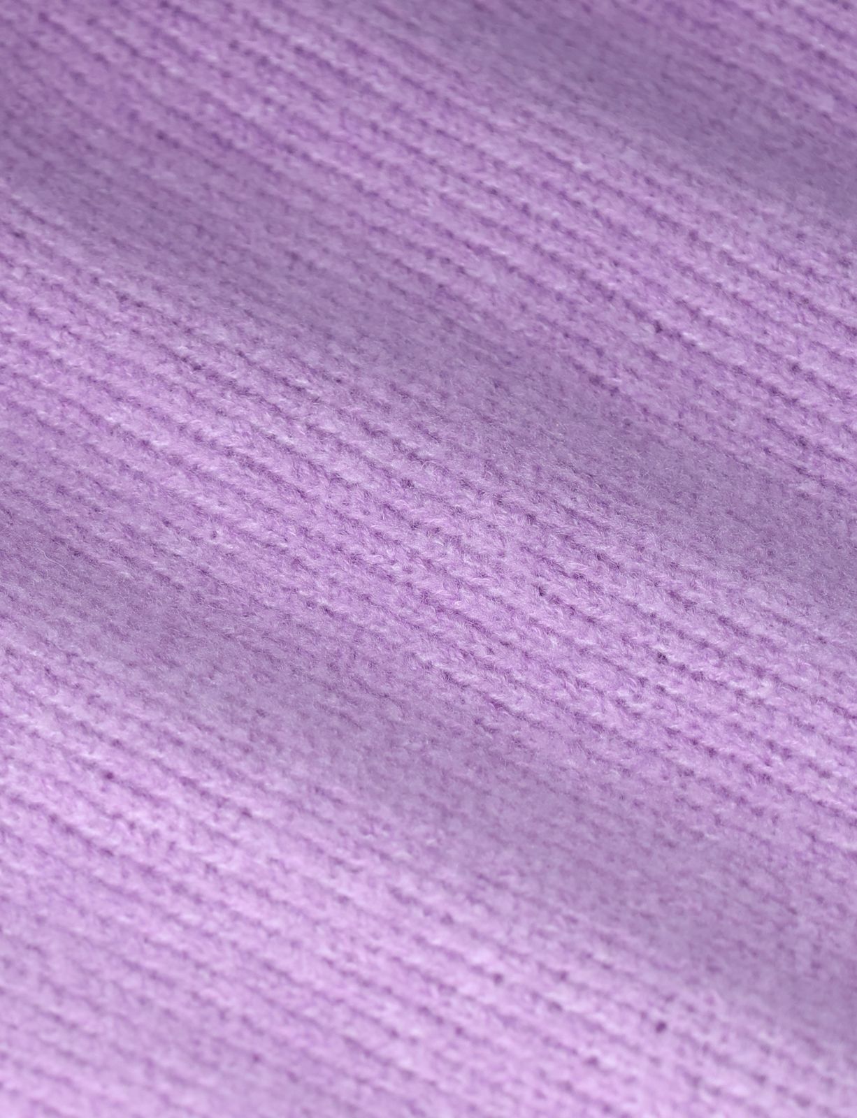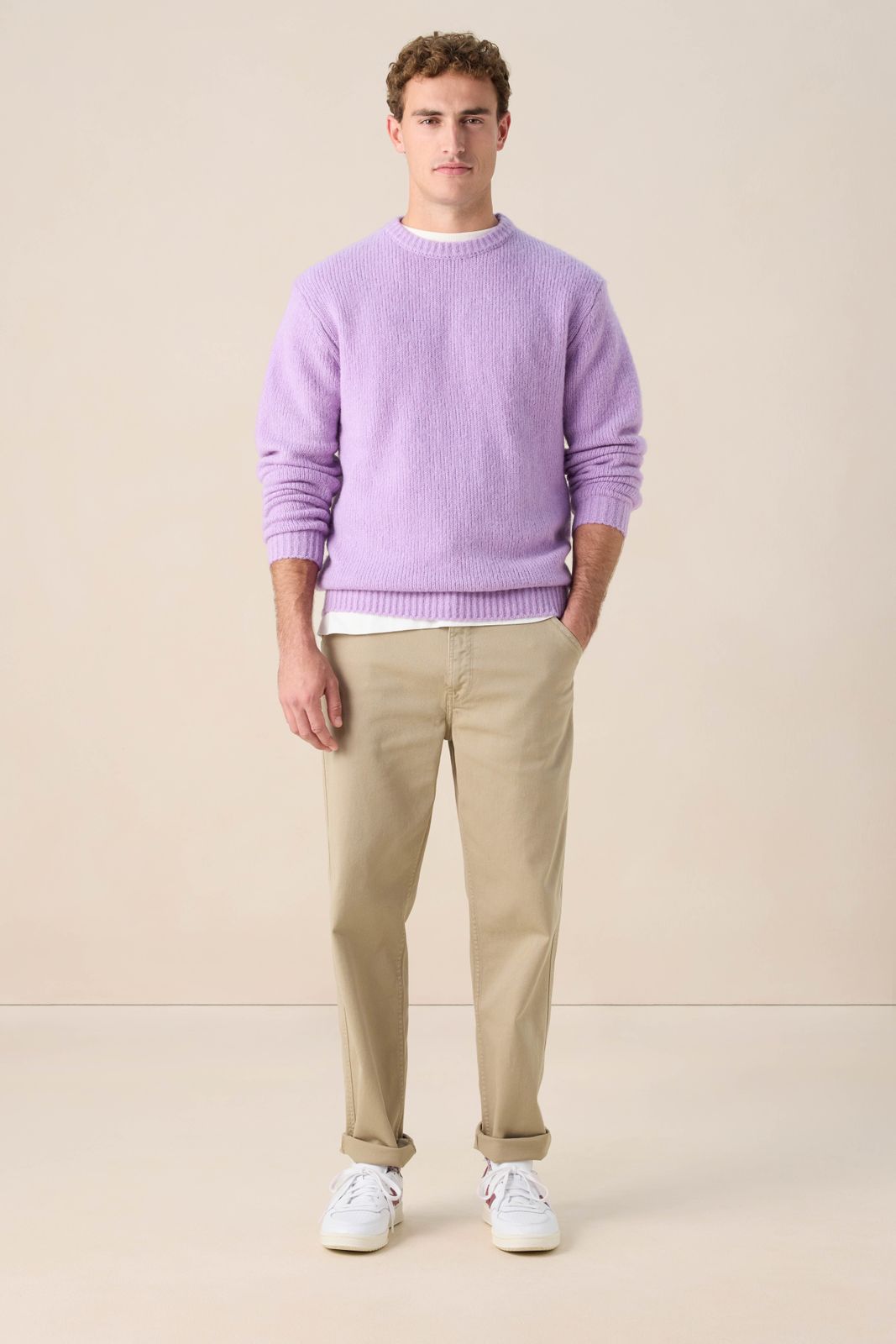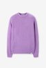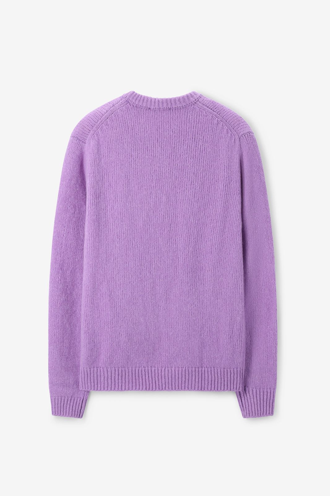 Lilafarbener Pullover der Marke Sissy-Boy. Der Pullover hat einen runden Ausschnitt, Rippbündchen, einen Relaxed Fit und eine angenehme Strick-Qualität. Material: 50% Yak, 50% Merinowolle.
