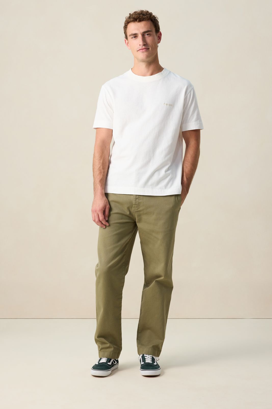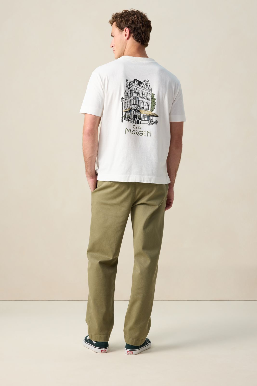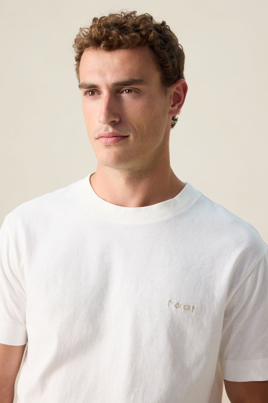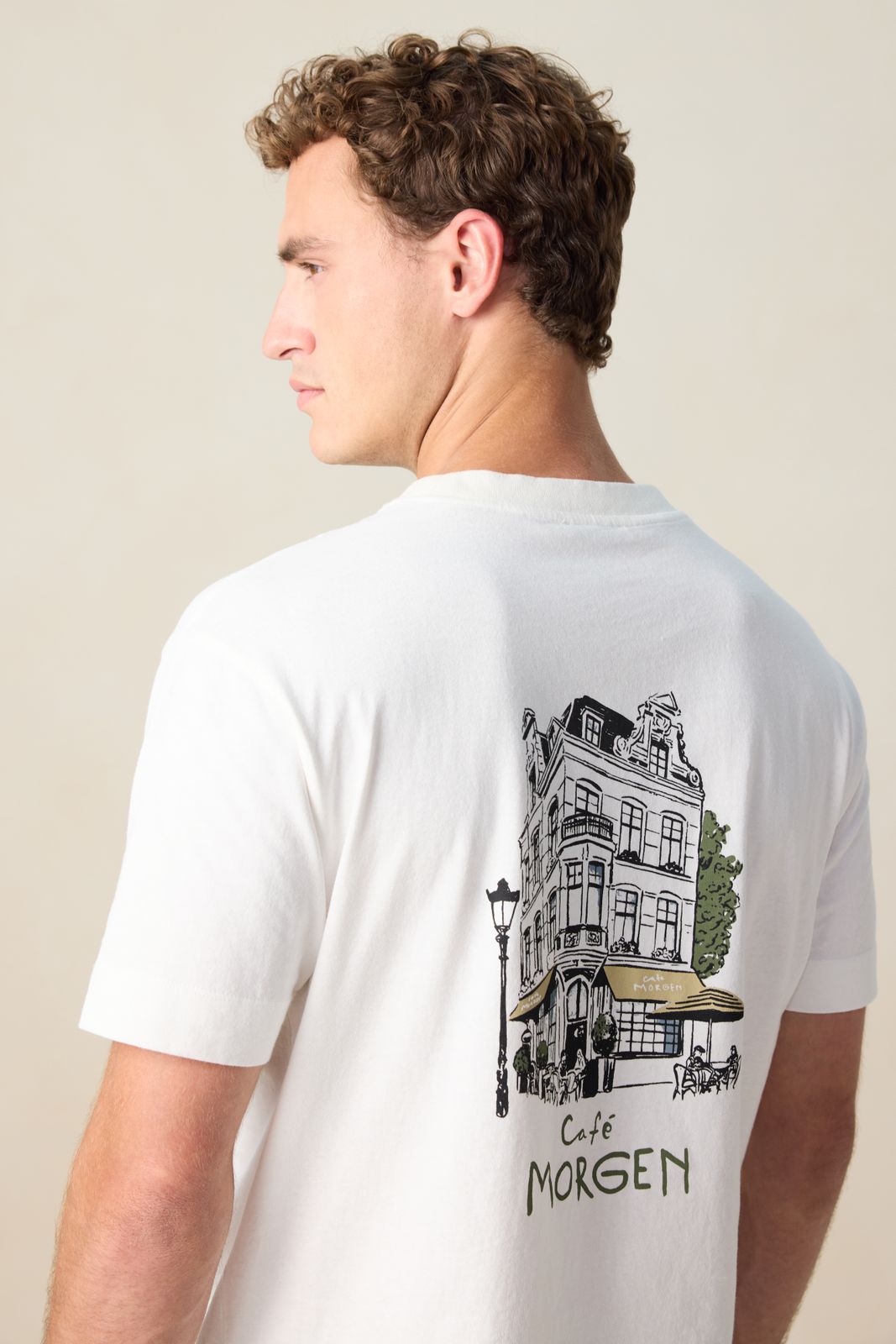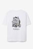 Weißes T-Shirt der Marke Sissy-Boy. Das Shirt hat einen runden Ausschnitt, einen Relaxed Fit und eine kleine Stickerei auf der Vorder- sowie einen Artwork-Print auf der Rückseite. Unser Model ist 1,87 m groß und trägt Größe M. Material: 100% Baumwolle.