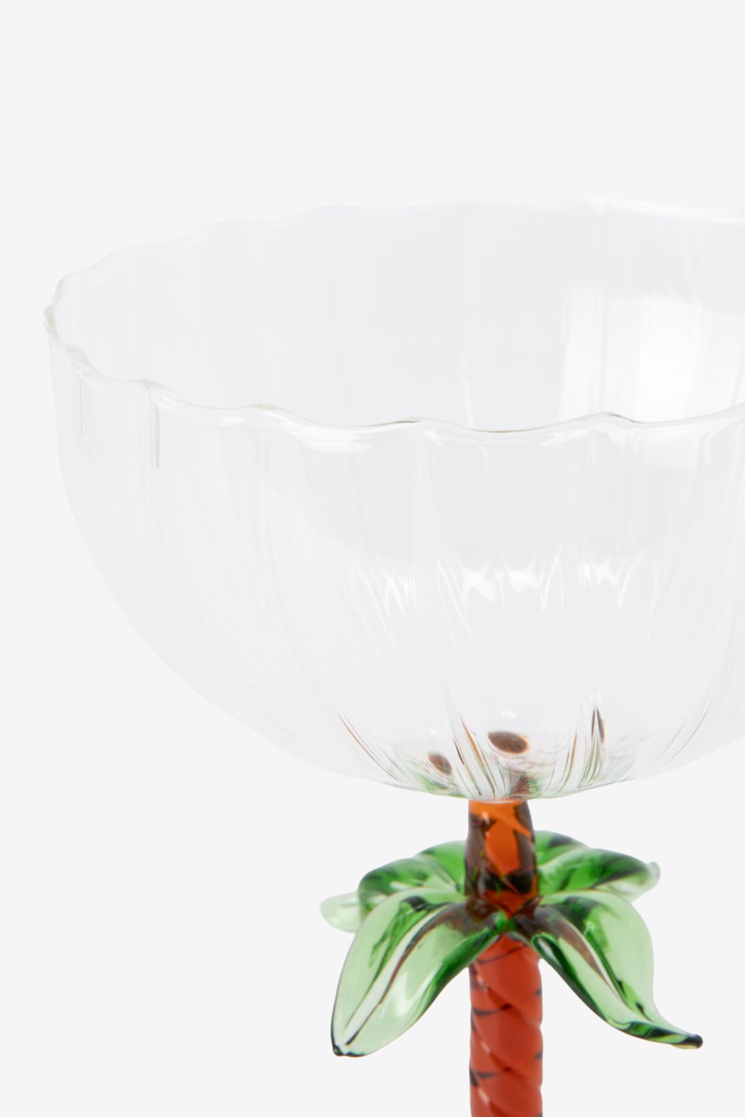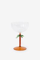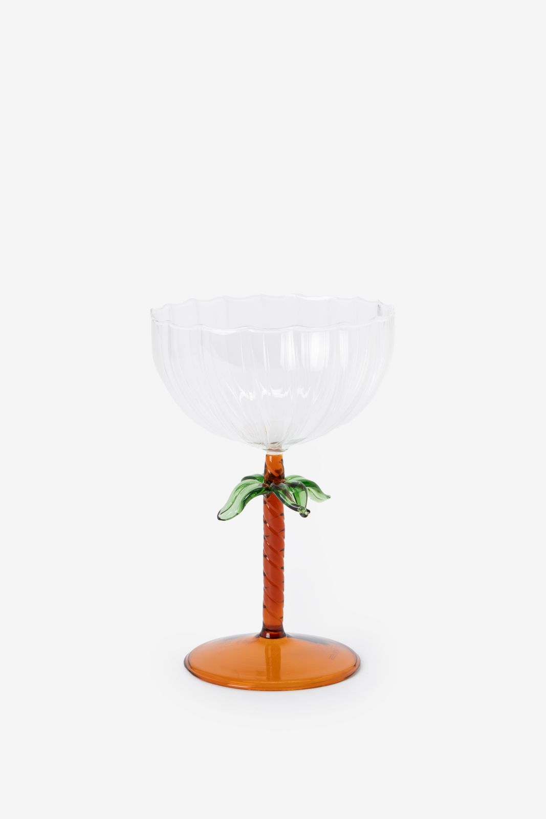 Champagnerglas mit Palme und orangefarbenem Griff. Ein tolles Geschenk für einen lieben Menschen oder dich selbst. Material: 100% Glas. Maβe: 11x16,5 cm.