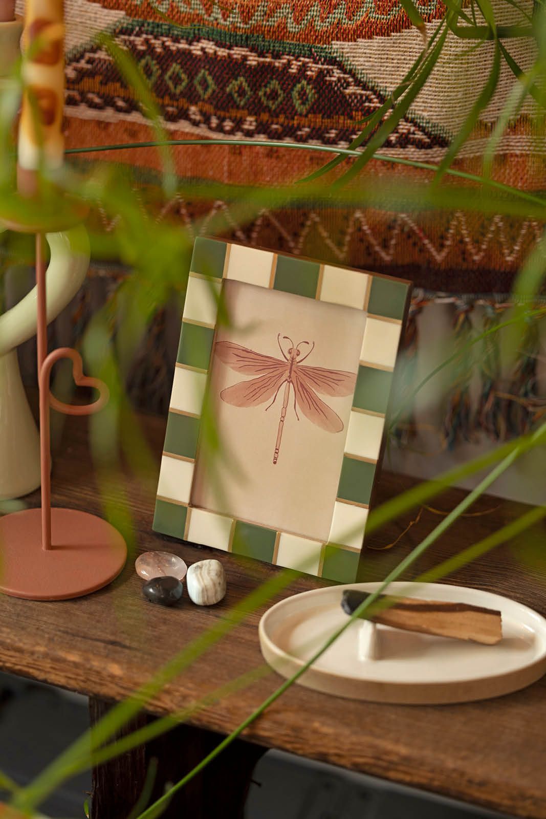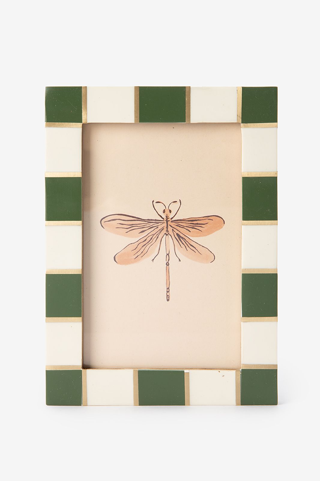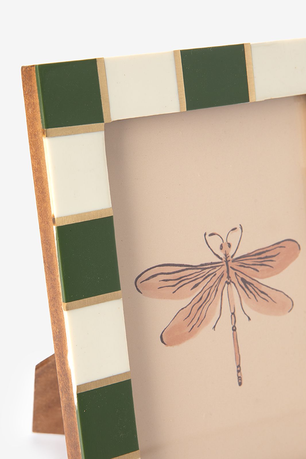 Fotorahmen mit grün-weiß gestreiftem Rand der Marke Sissy-Boy. Die Rückseite des Rahmens ist aus MDF gearbeitet. Der Bilderrahmen eignet sich für Fotos mit einem Format von 10x15 cm. Maβe: 13x18 cm.