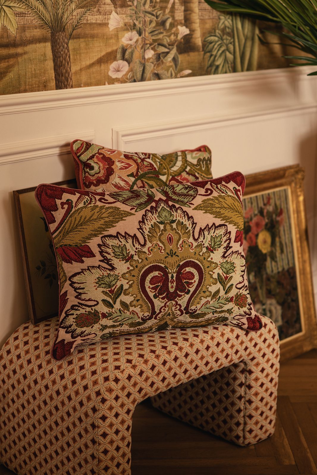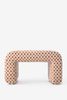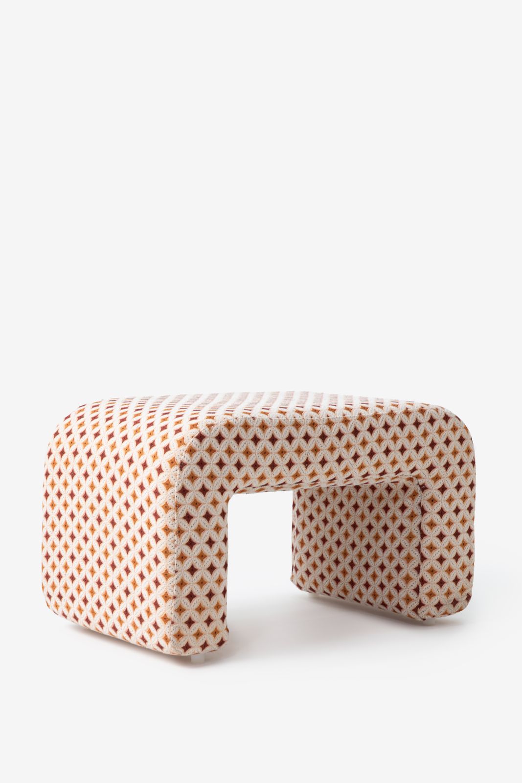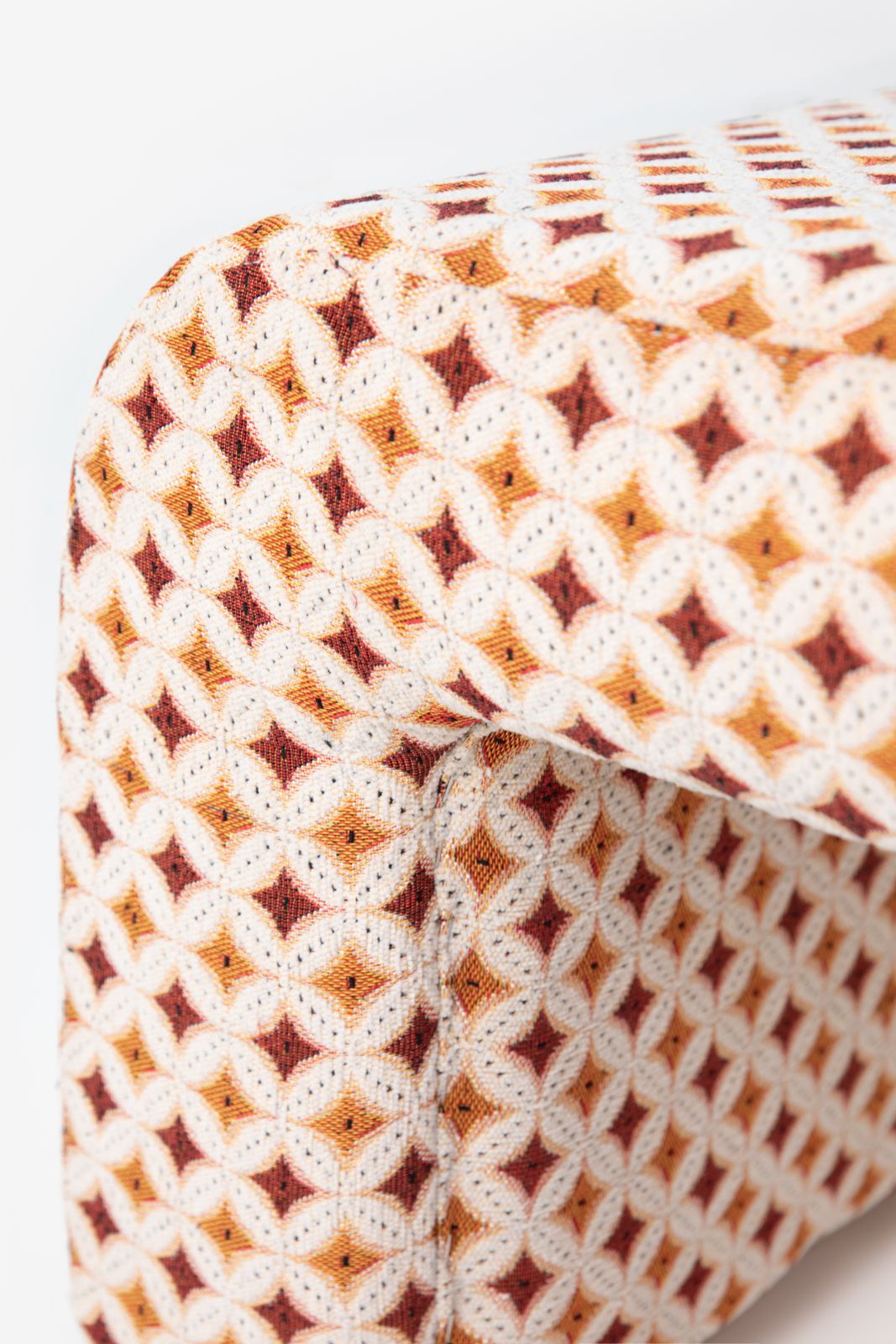 Gemusterter Jacquard-Puff der Marke Sissy-Boy. Der Hocker hat eine stylishe 70's-Optik und ein tolles Jacquard-Gewebe in Rot und Orange. Pflegeanleitung: Flecken nur lokal reinigen. Maβe: 68x41x40 cm. Material: 60% MDF, 25% Foam, 15% Baumwolle.