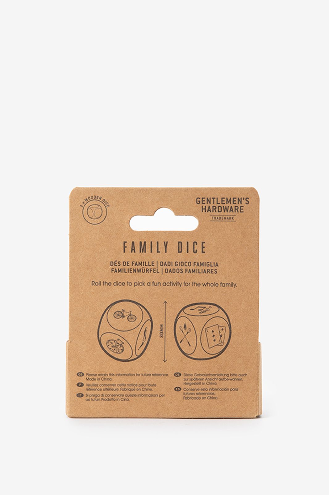 Family Dice-Set der Marke Gentlemen's Hardware. Das kompakte Set birgt endlos viel Spielspaß mit klassischen Würfelspielen, die leicht verständlich sind, und im Handumdrehen für gute Stimmung sorgen. Egal, ob zu Hause, unterwegs oder am Lagerfeuer, mithilfe dieser Spiele kreierst du gemeinsame Momente und Erinnerungen, die bleiben. Maβe: 3x3 cm. Material: 100% Holz.