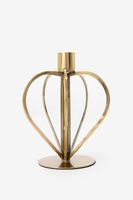Glas-Kerzenhalter der Marke Sissy-Boy. Der Kerzenständer hat vier Rundungen, die zusammen eine verspielte Herz-Form ergeben. In der Mitte befindet sich eine Halterung für eine Kerze. Maβe: 14,6x11 cm. Material: 50% Glas, 50% Messing.