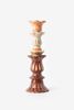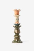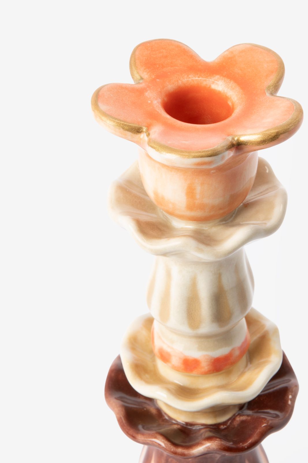 Brauner Kerzenhalter der Marke Sissy-Boy. Der Kerzenständer ist mit Details in Orange und Beige abgesetzt, hat ein geschichtetes Design und ist aus 100% Keramik gearbeitet. Maβe: 24,5x8,5x8,5 cm.