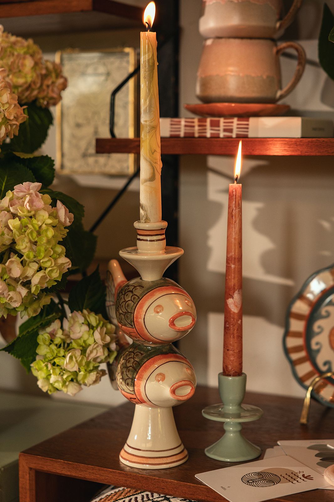 Kleiner blauer Kerzenhalter der Marke Sissy-Boy. Der Kerzenständer hat eine ausgefallene Form mit Rundungen und ist aus Keramik gearbeitet. Maβe: 9,5x7x7 cm.