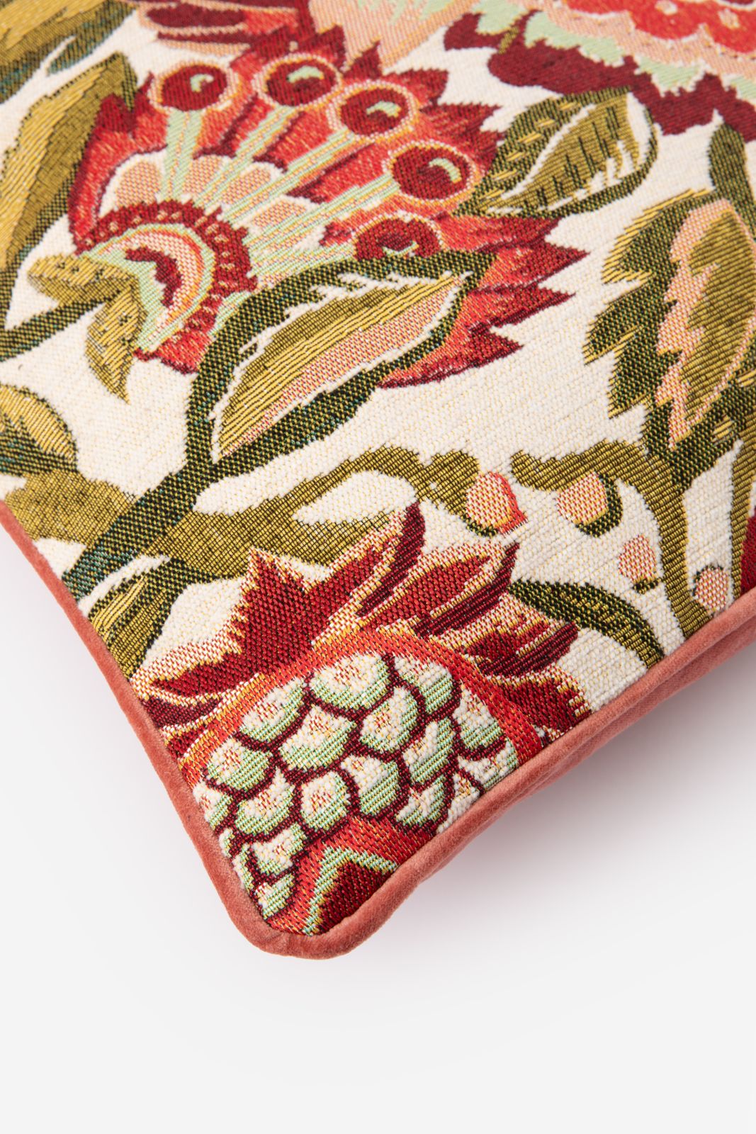 Mehrfarbiges Jacquard-Kissen der Marke Sissy-Boy. Das Kissen ist mit einem wunderschönen Blumenmuster in Rosa und Rot versehen und hat einen verdeckten Reißverschluss auf der Rückseite. Maβe: 50x50 cm. Material: 80% Polyester, 20% Baumwolle. Füllung: 100% Polyester.