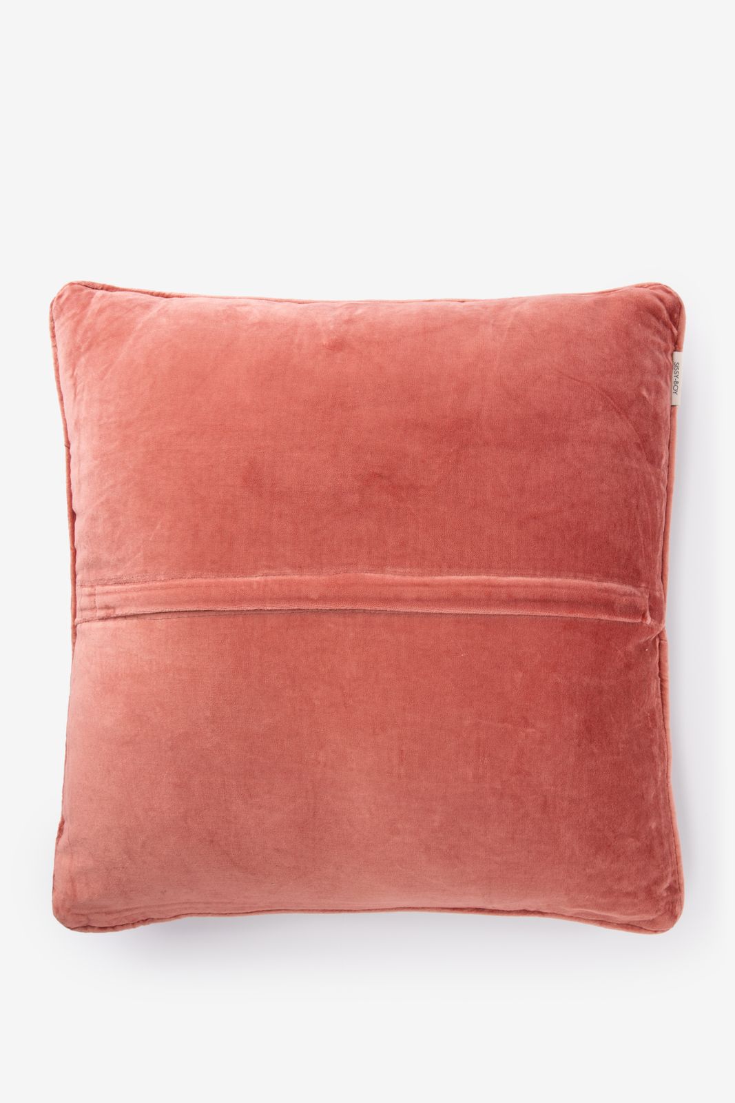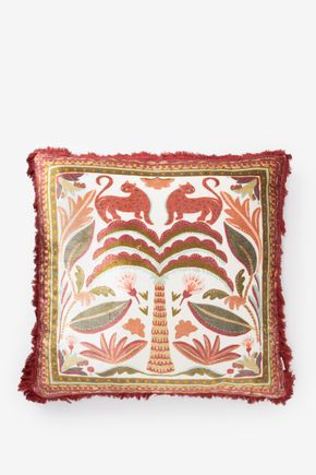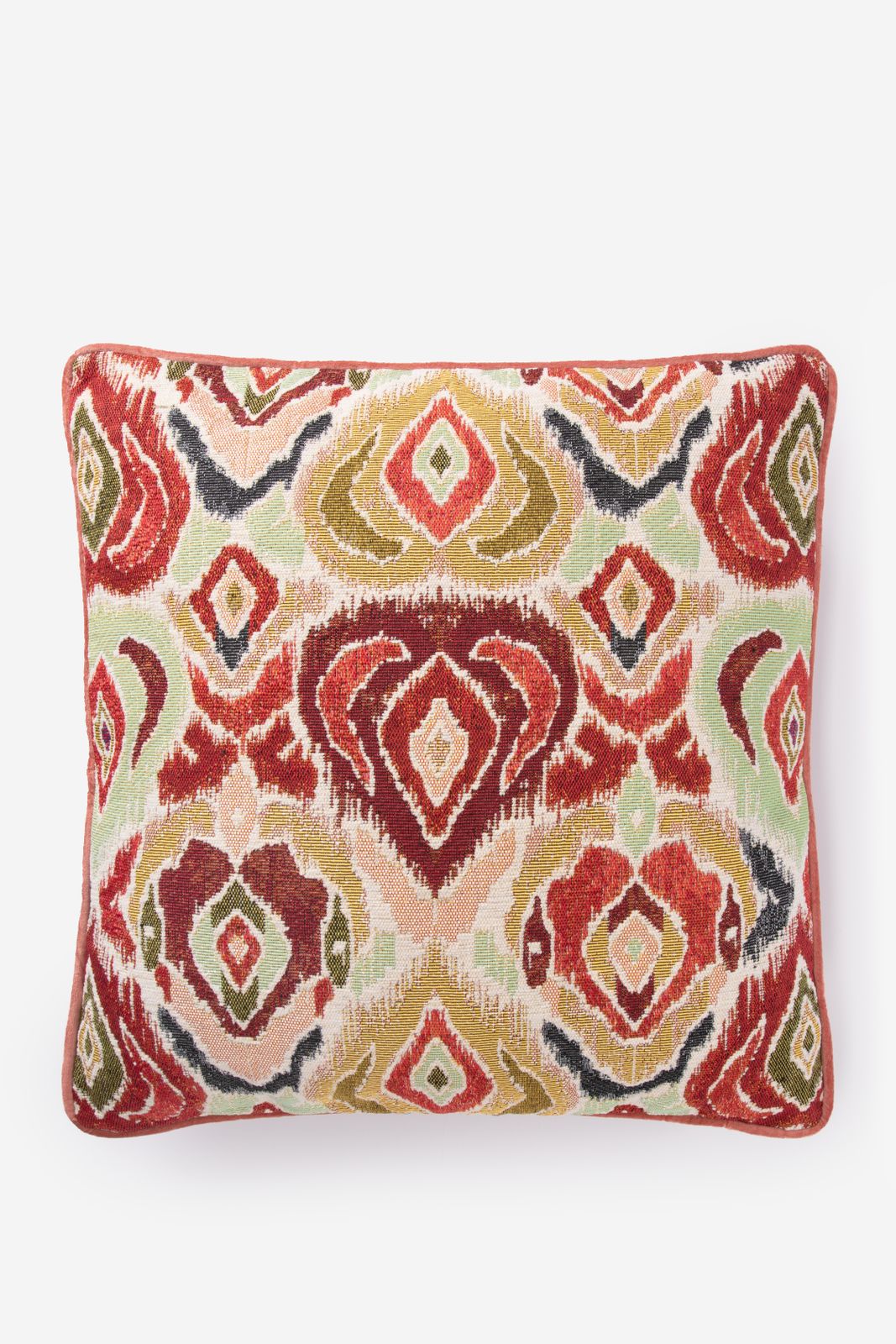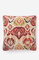 Rotes Kissen der Marke Sissy-Boy. Das Kissen hat ein wunderschönes Ikatmuster mit grünen und rosafarbenen Details. Maβe: 50x50 cm. Material: 80% Polyester, 20% Baumwolle.