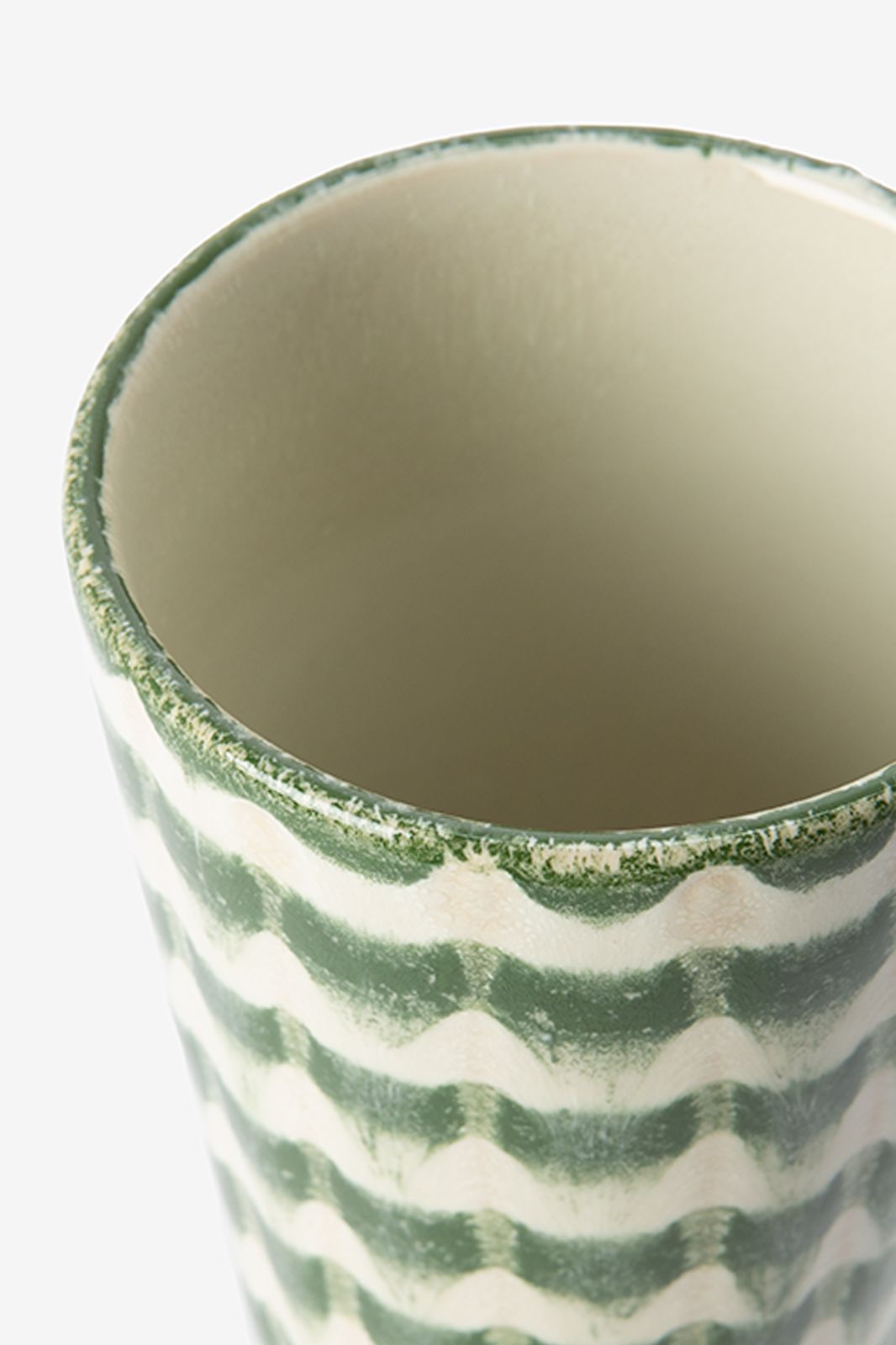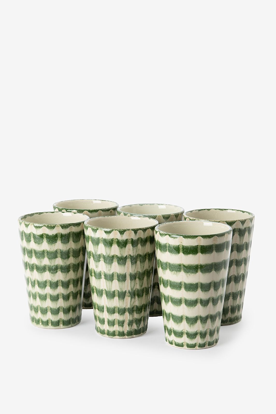 Grüner Latte Macchiato-Becher mit Print der Marke Sissy-Boy. Der Becher ist ofenfest, mikrowellengeeignet, spülmaschinengeeignet und aus Keramik gearbeitet. Hinweis: Im Onlineshop ist dieser Artikel ausschließlich im 6er-Set erhältlich. Material: 100% Keramik. Maβe: 8,5x13 cm.