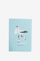 Freudige Nachricht! Diese wunderschöne Postkarte mit witzigem Storch ist genau das Richtige, um frischgewordenen Eltern zu gratulieren. Die Karte misst 16x11 cm.
