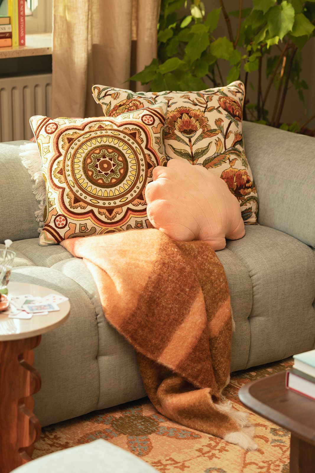 Samtkissen in hellem Orange der Marke Sissy-Boy. Das Kissen ist mit wunderschönen Ziernähten versehen und hat die Form einer Muschel. Maβe: 48x40 cm. Material: 100% Baumwolle. Füllung: 100% Polyester. Pflegeanleitung: Bei 30 Grad gesondert waschen. Nicht bleichen. Nicht im Trockner trocknen. Nicht chemisch reinigen. Auf kleiner Stufe bügeln.