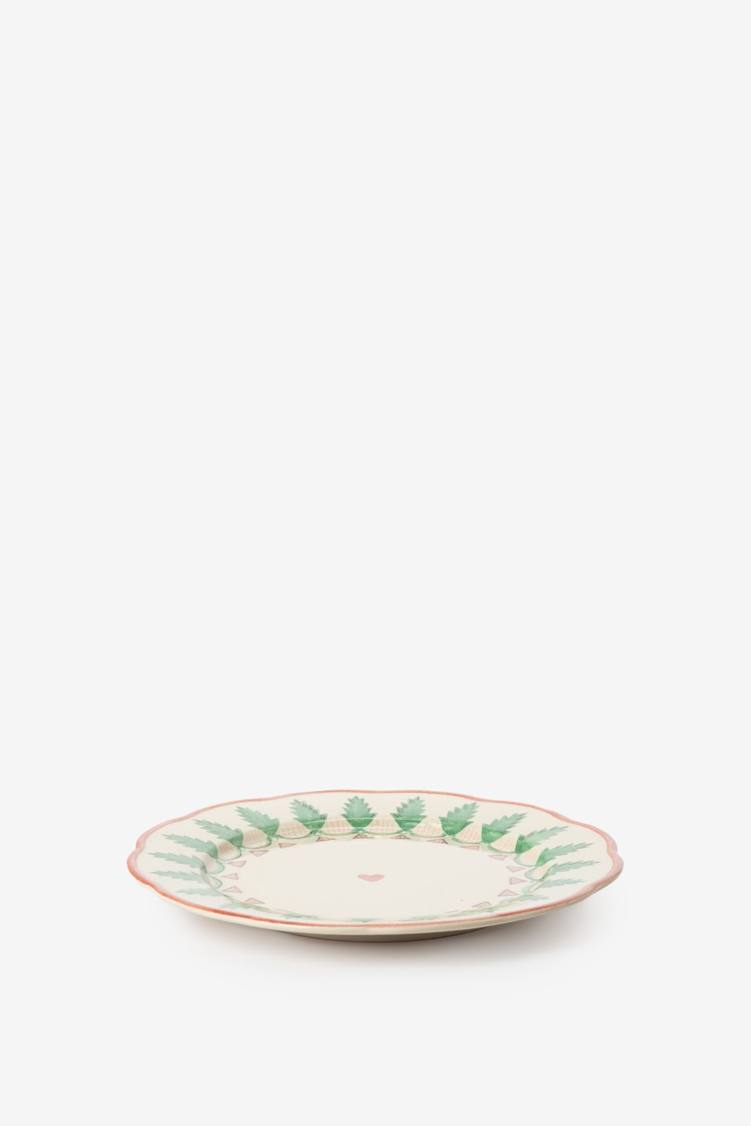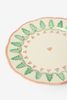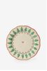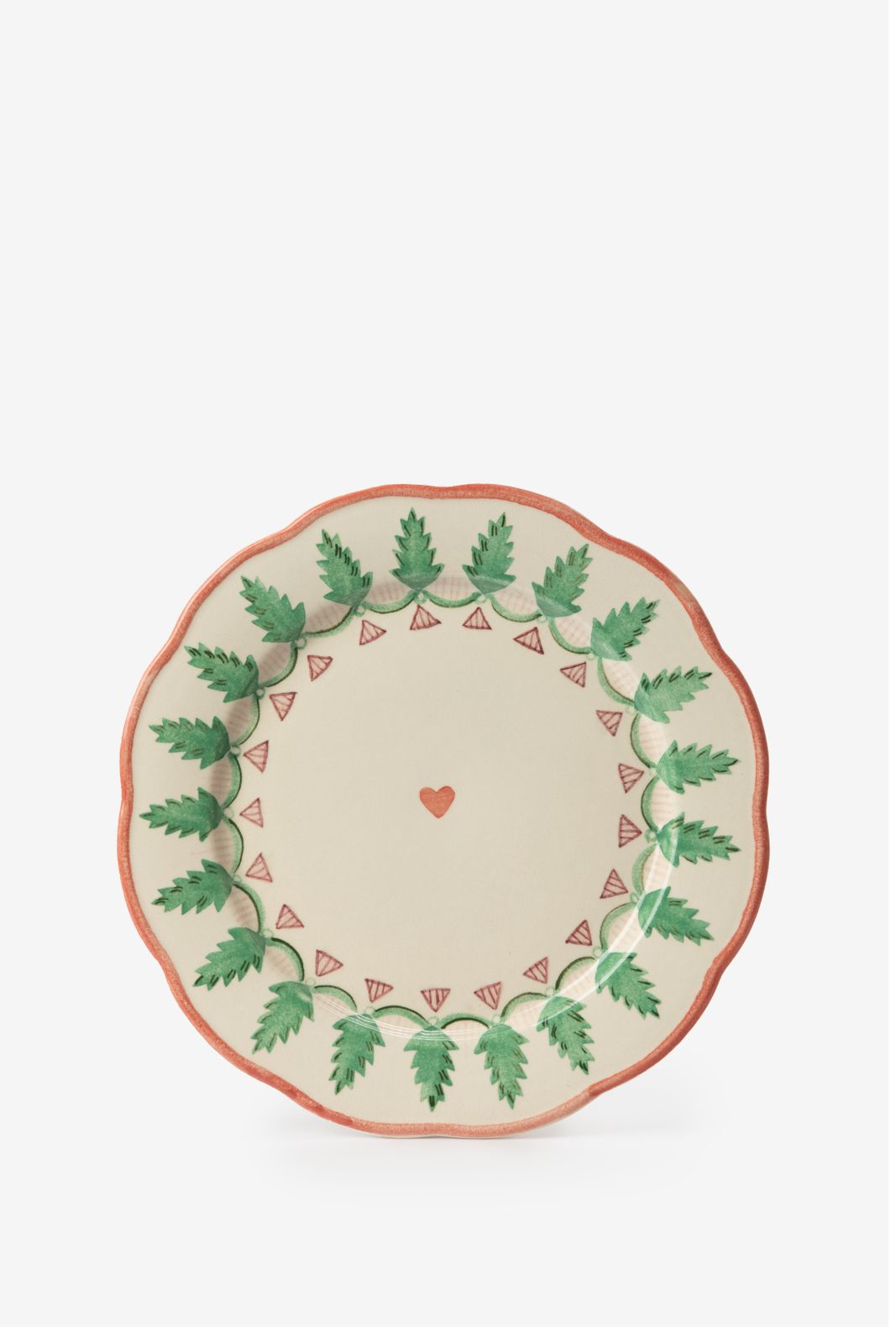 Mehrfarbiger Speiseteller der Marke Sissy-Boy. Der weiße Teller ist mit grünen Weihnachtsbäumen bemalt und mit roten Details und einem Herz in der Mitte versehen. Durchmesser: 28 cm. Material: 100% Keramik.
