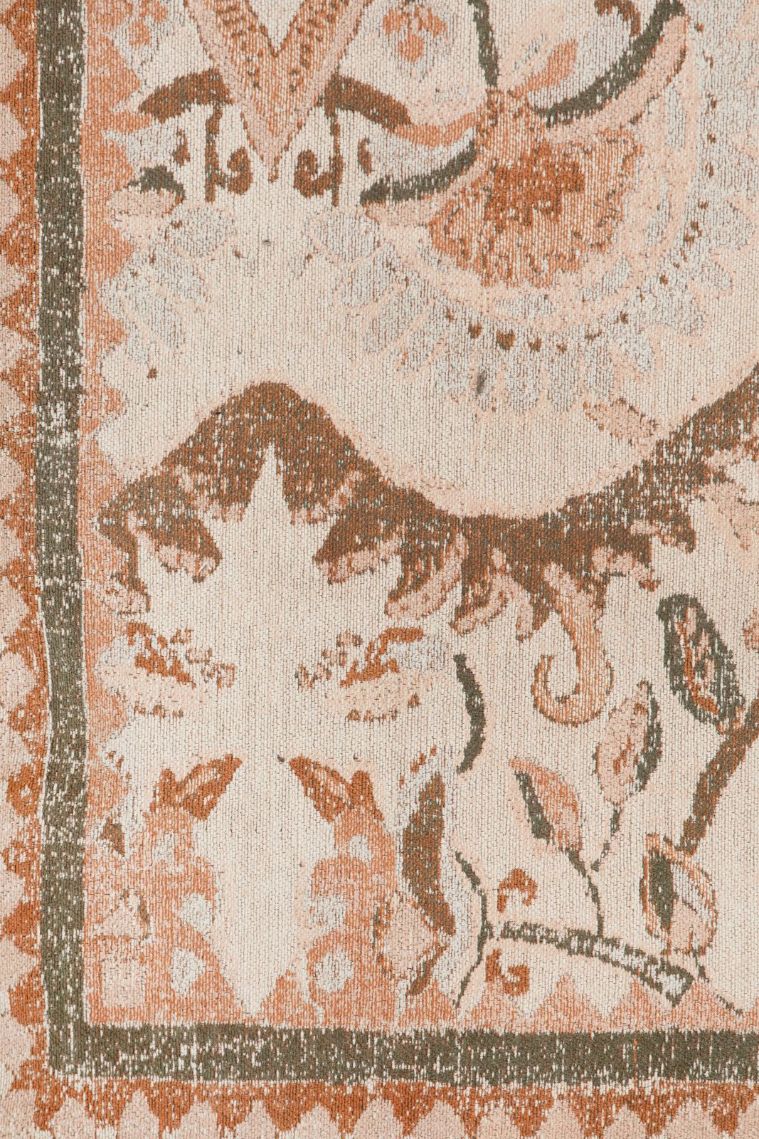 Bunt gemusterter Teppich der Marke Sissy-Boy. Der kurzflorige Teppich in hellem Orange hat ein symmetrisches Boho-Blumenmuster in Grün, Braun und Orange. Pflegeanleitung: Flecken nur lokal reinigen. Maβe: 180x280 cm. Material: 95% Baumwolle, 5% Polyester.