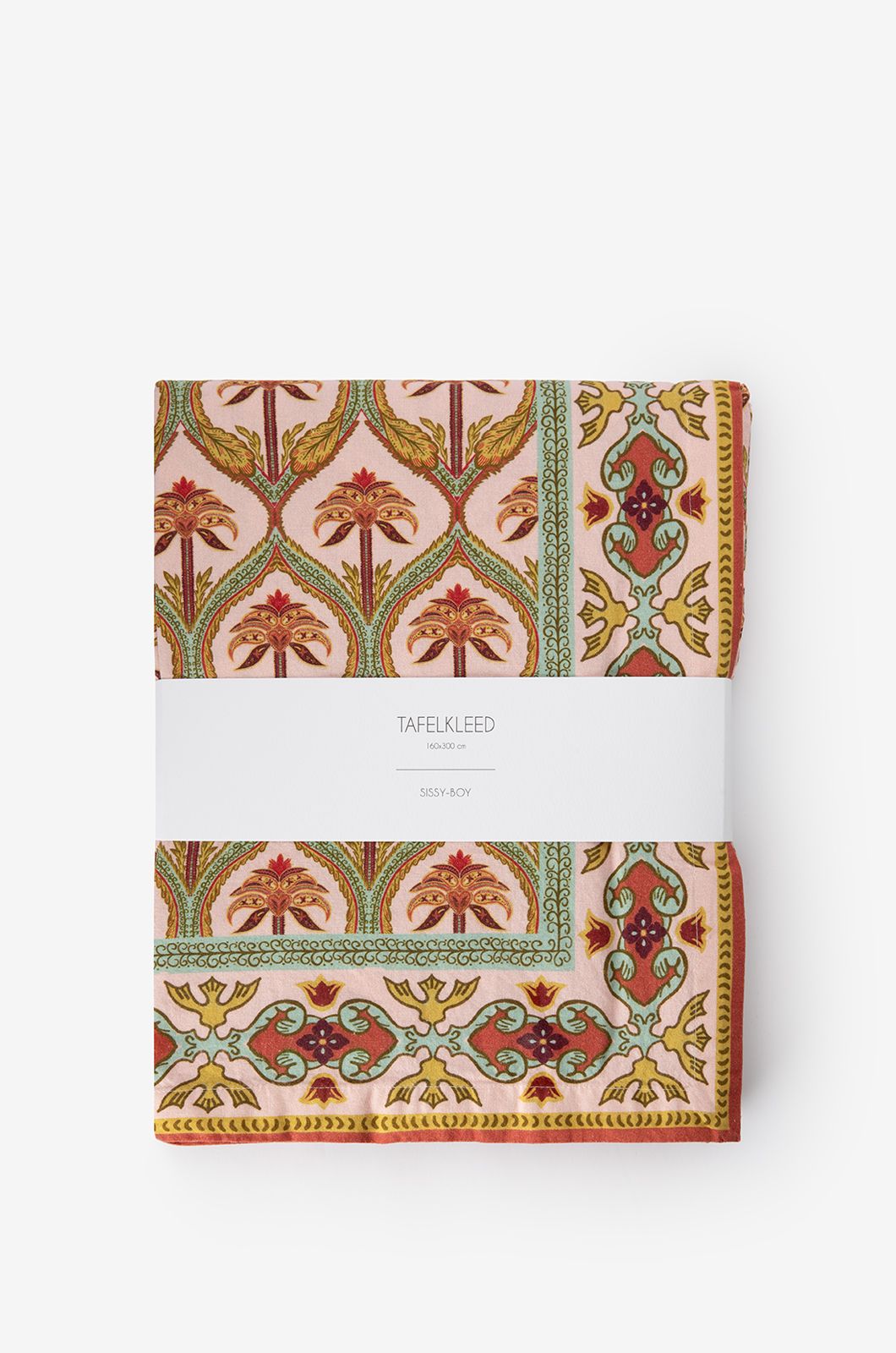Rosafarbene Tischdecke der Marke Sissy-Boy. Die Tischdecke hat ein wunderschönes Palmenmuster. Waschanleitung: Bei 40 Grad waschen. Nicht im Trockner trocknen. Auf mittlerer Stufe bügeln. Maβe: 160x300 cm. Material: 70% Baumwolle, 30% Leinen.