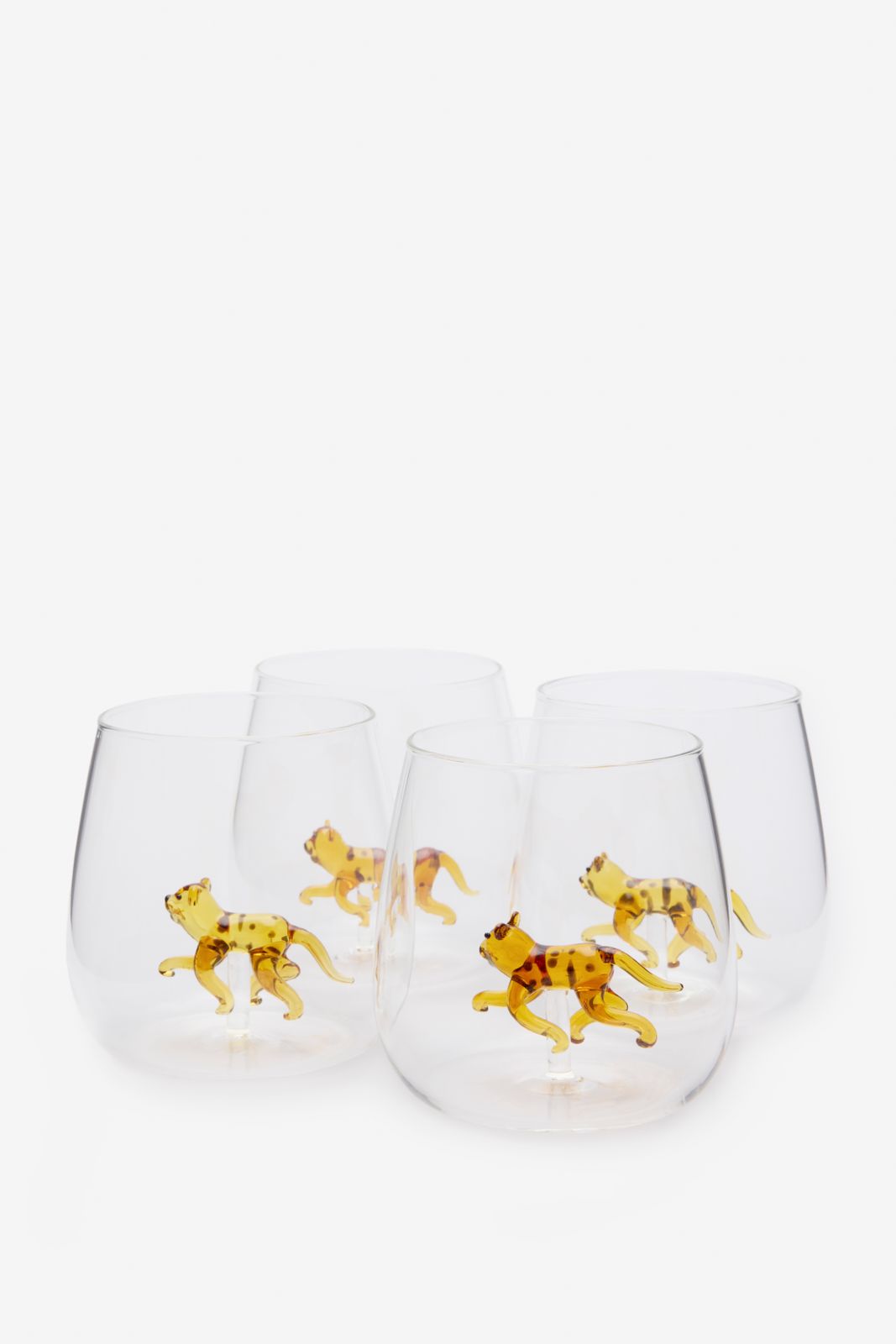 Wassergläser der Marke Sissy-Boy. Die Gläser haben einen kleinen Leoparden im Innern und verleihen jedem gedeckten Tisch das gewisse Etwas. Hinweis: Im Onlineshop werden die Gläser ausschließlich im 4er-Set erhältlich! Material: 100% Glas. Maβe: 7x10 cm.