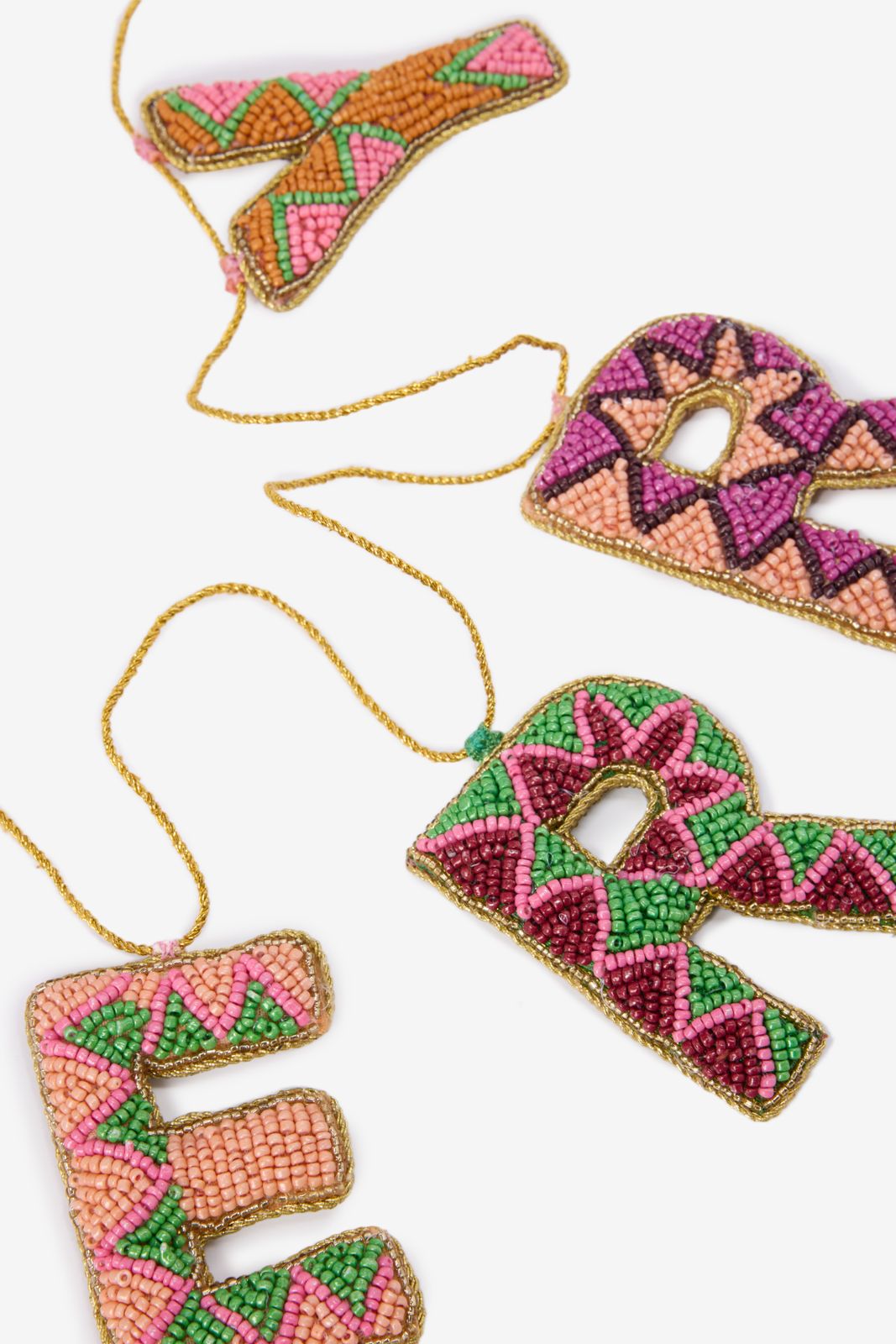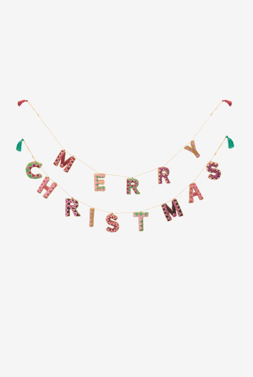 Weihnachtsgirlande der Marke Sissy-Boy. Die Girlande besteht aus zwei einzelnen Teilen, die zusammen den Schriftzug "Merry Christmas" formen. Die Buchstaben haben unterschiedliche Farben. Hinweis: Die Girlande wird als Set verkauft. Material: 70% Glas, 30% Polyester.