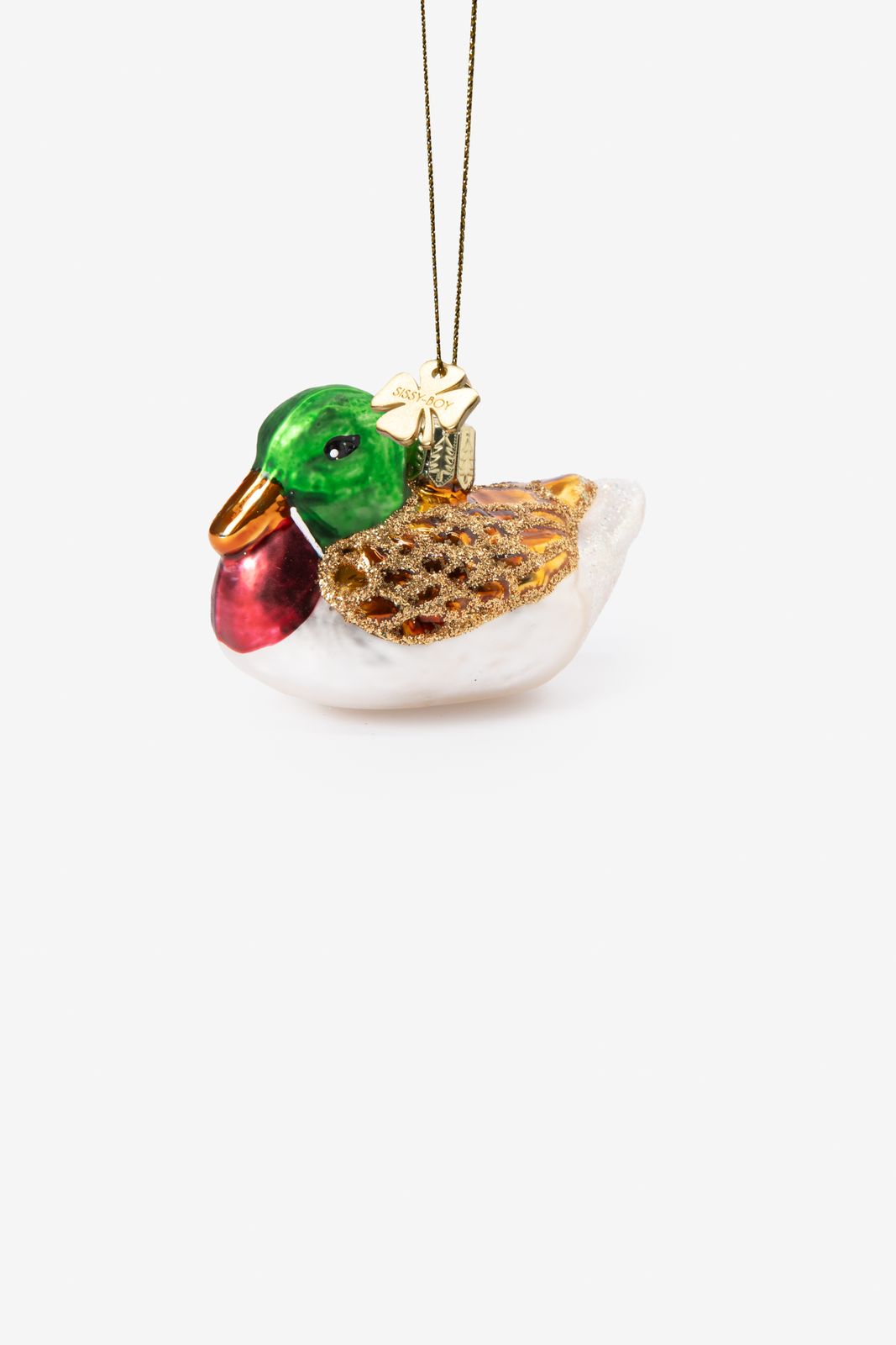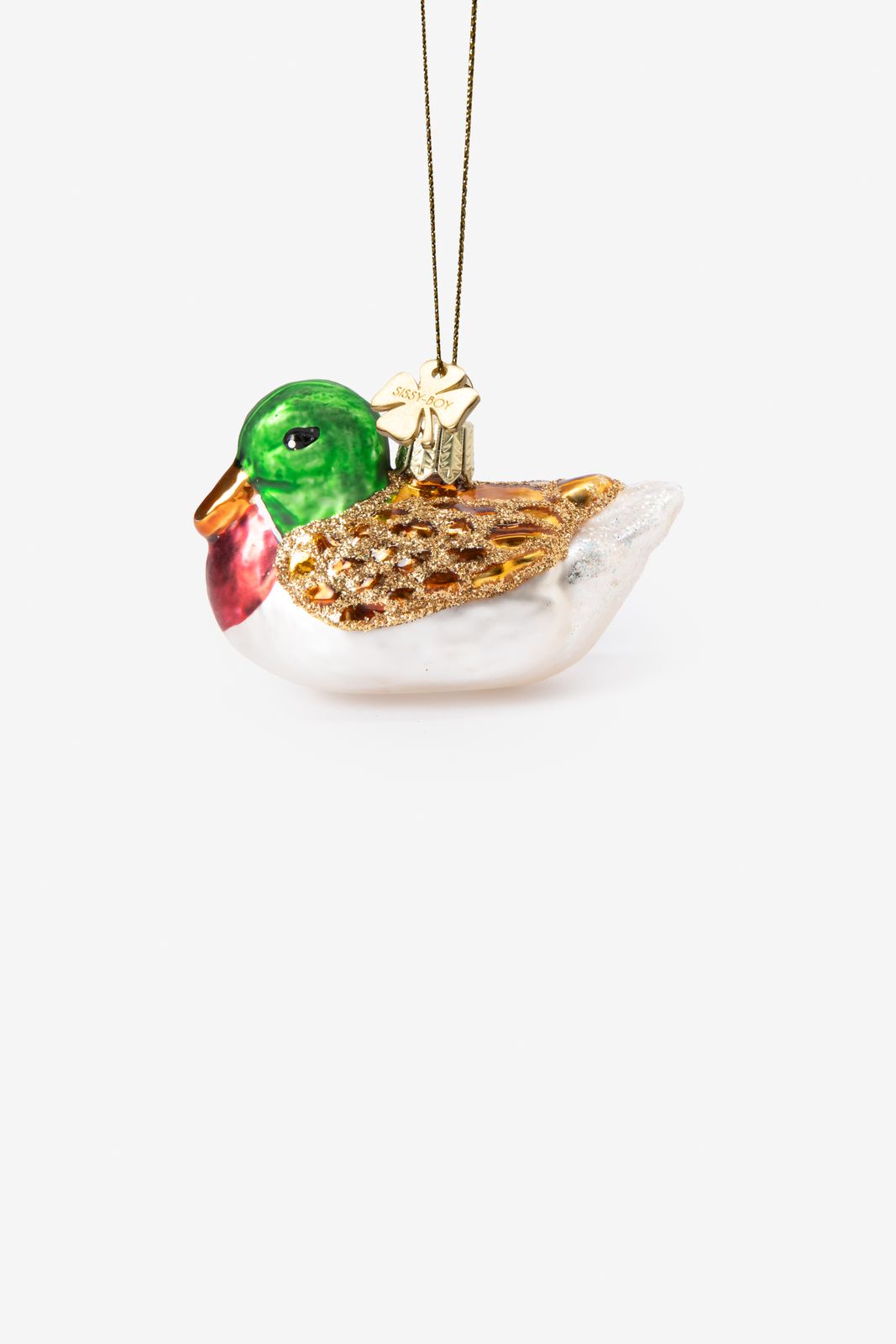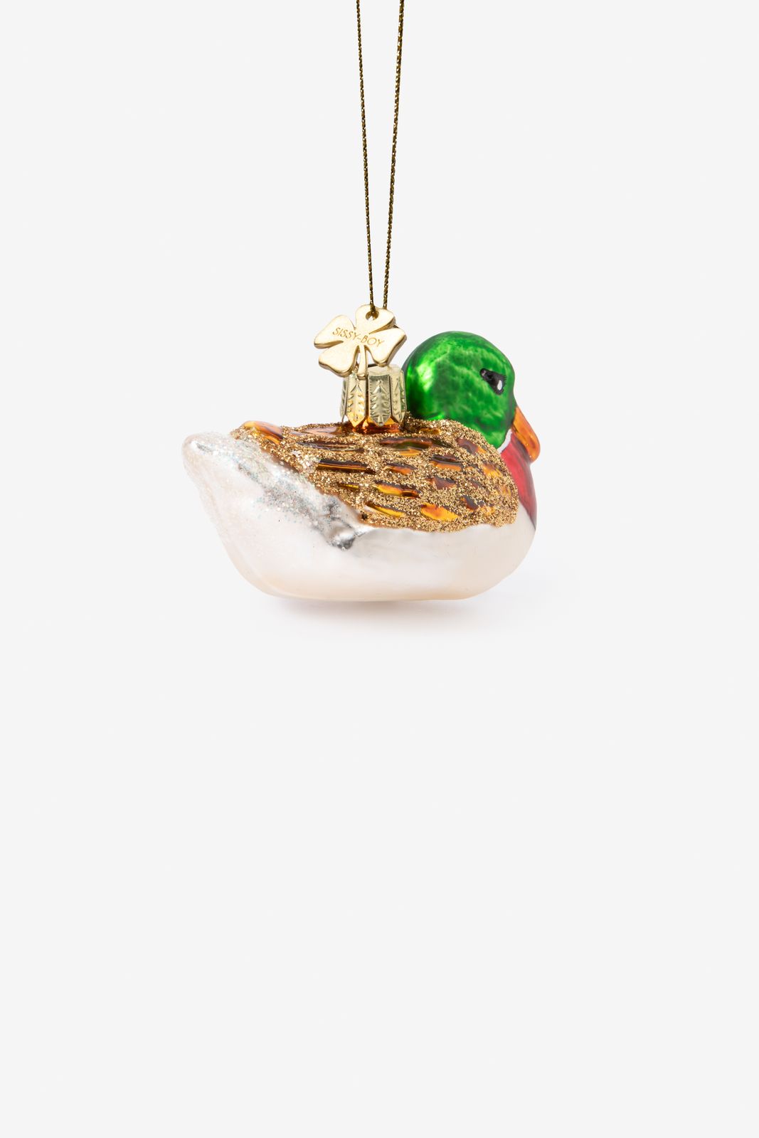 Weihnachtskugel in Form einer kleinen Ente der Marke Sissy-Boy. Die Christbaumkugel ist aus Glas gearbeitet und hat eine Länge von 7 cm.