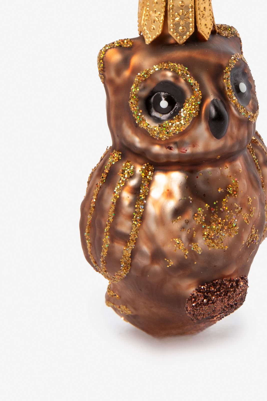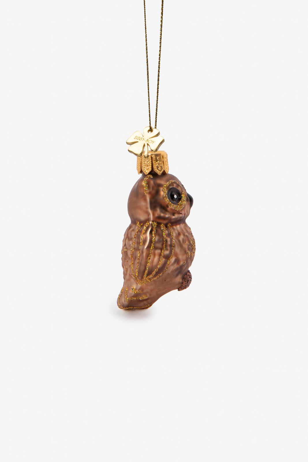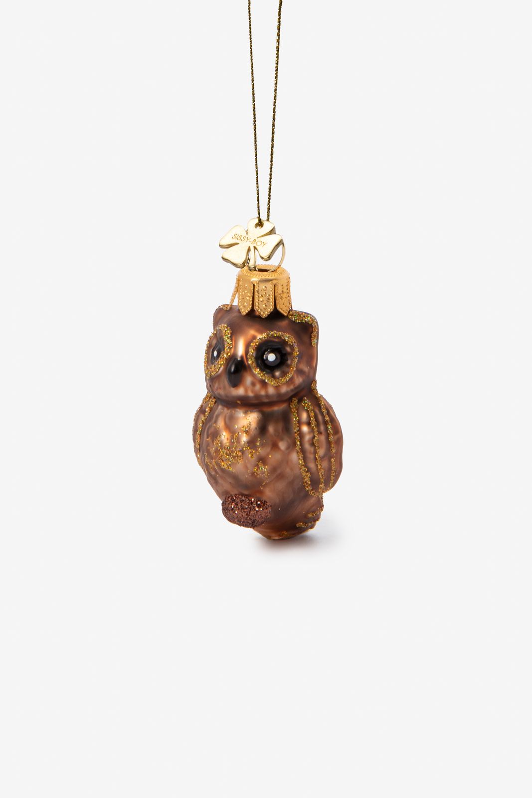 Weihnachtskugel in Form einer kleinen Eule der Marke Sissy-Boy. Die Christbaumkugel ist aus Glas gearbeitet und hat eine Länge von 4,5 cm.