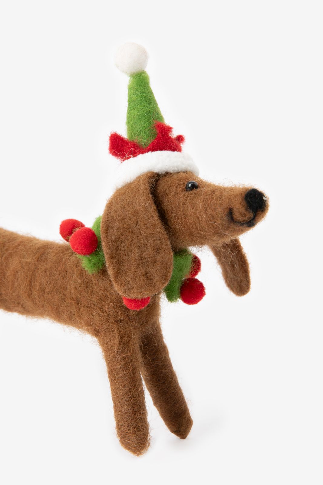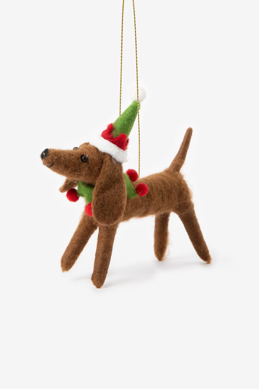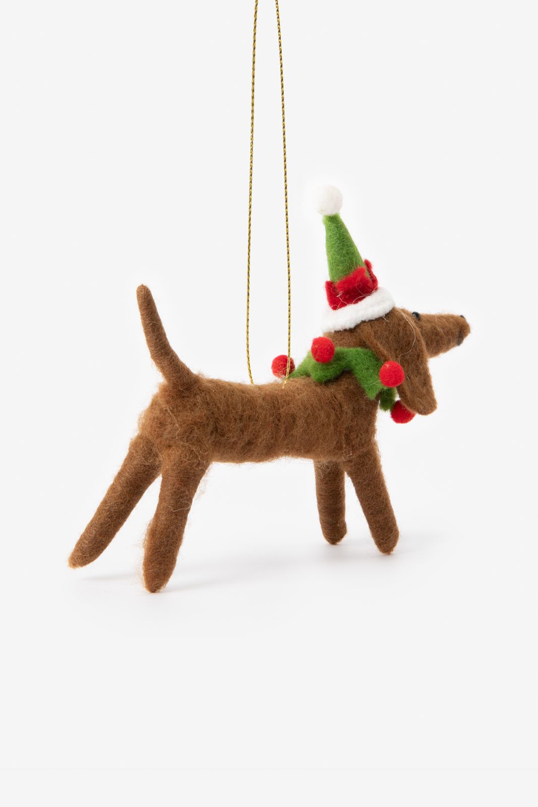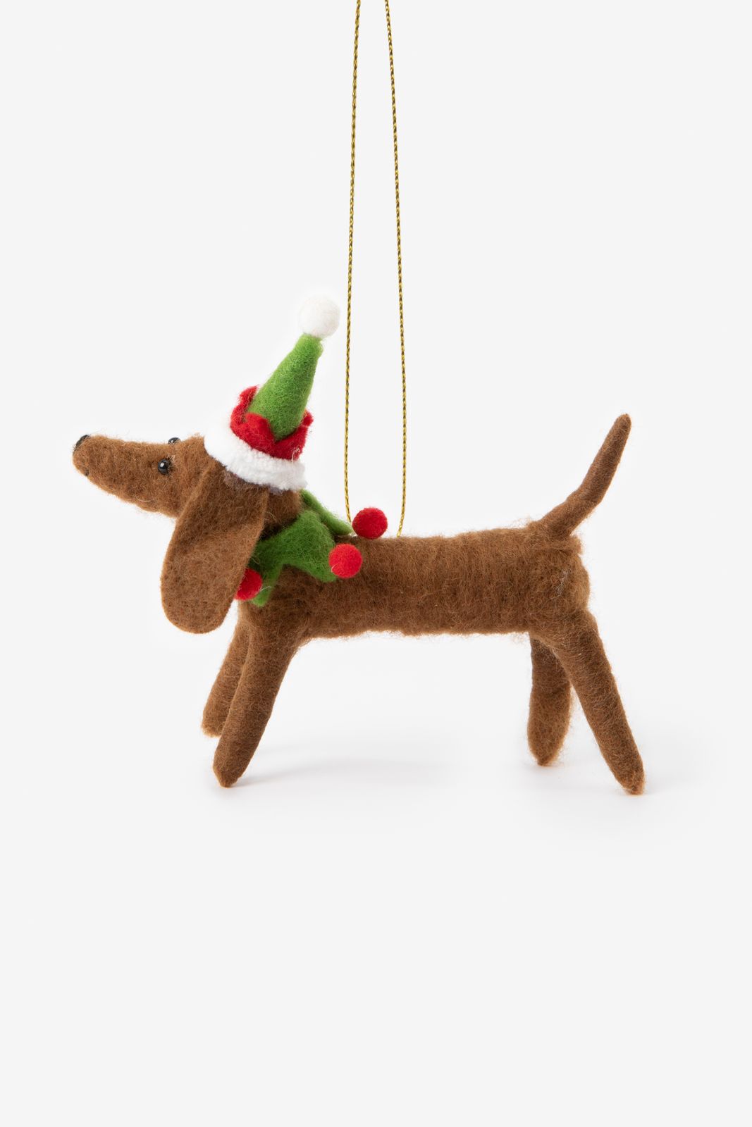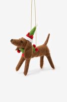 Ausgefallenes Weihnachtsornament in Form eines Dackels der Marke Sissy-Boy. Das Ornament ist aus Filz gearbeitet und 13 cm lang.