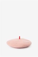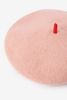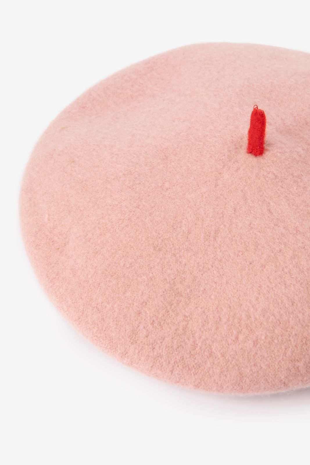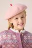 Rosafarbene Baskenmütze der Marke Sissy-Boy. Die Mütze hat eine weiche Strick-Qualität und ist mit einem Detail in dunklem Rosa versehen. Material: 100% Wolle.