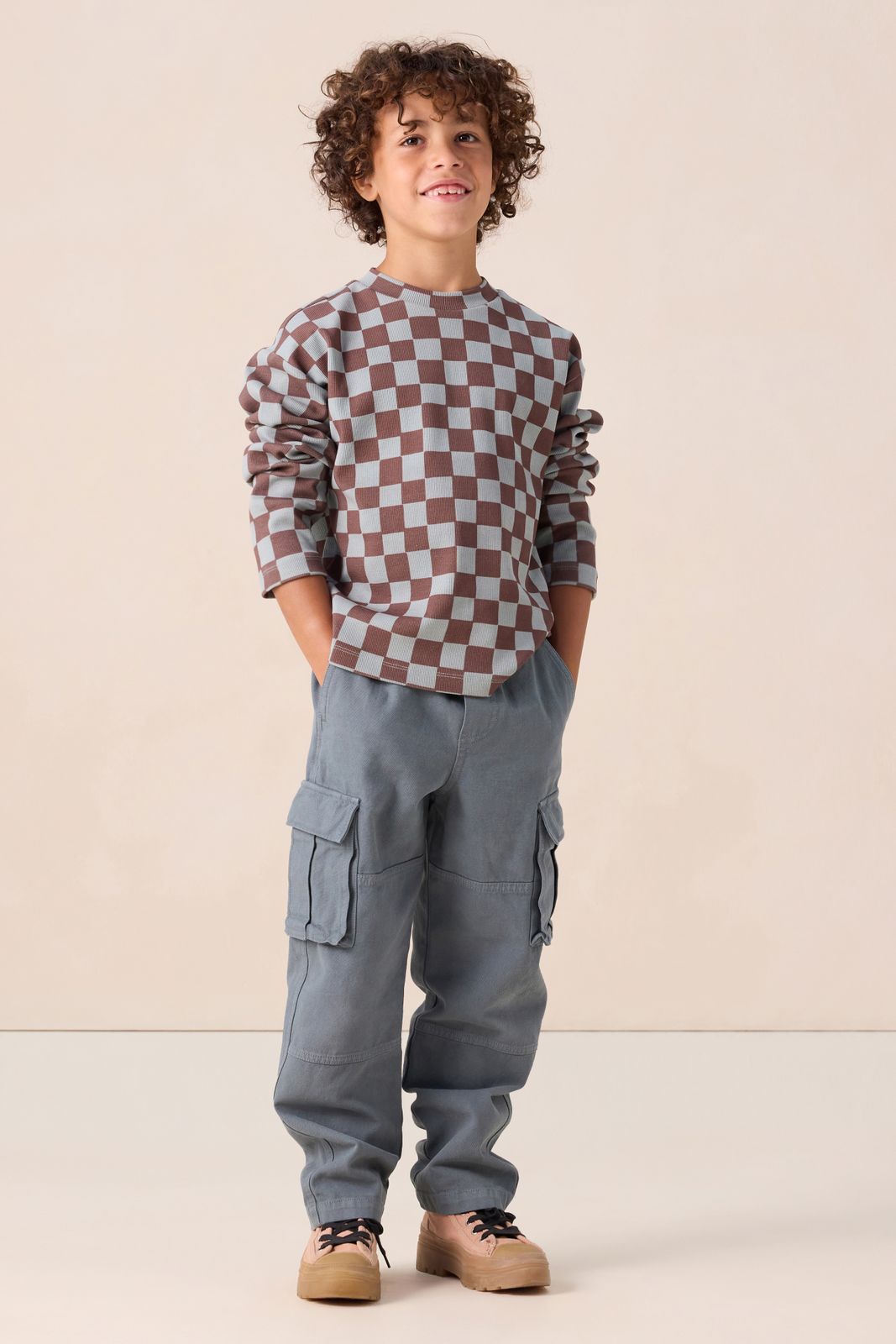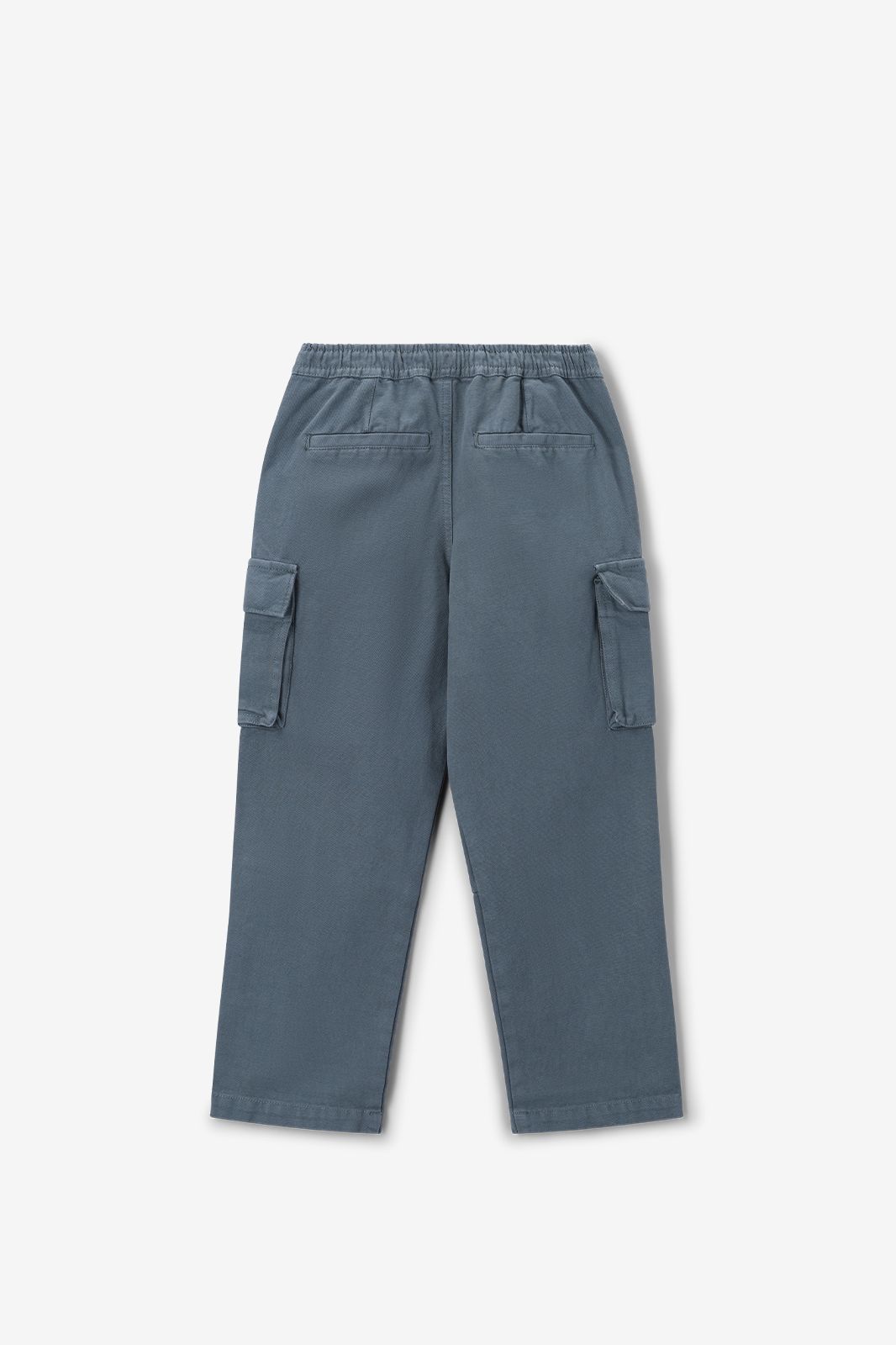 Blaue Cargo-Hose mit Kordelzug der Marke Sissy-Boy. Die Hose hat einen elastischen Bund, zwei Seitentaschen und zwei aufgenähte Taschen auf den Hosenbeinen. Material: 100% Baumwolle.