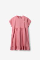Rosafarbenes Jersey-Kleid der Marke Sissy-Boy. Das Kleid hat kurze Ärmel, einen runden Ausschnitt, eine Mini-Länge, ein A-Linien-Modell und verspielte Rüschen-Details. Der Jerseystoff ist herrlich weich und luftig. Material: 100% Baumwolle.