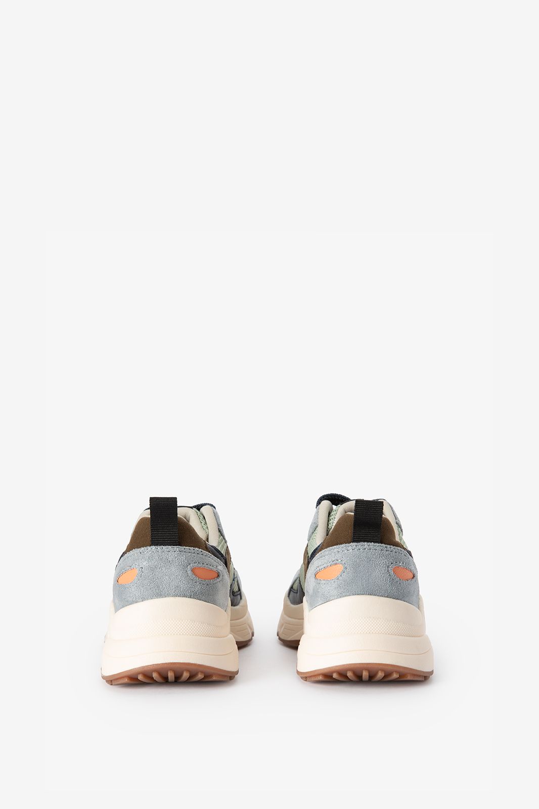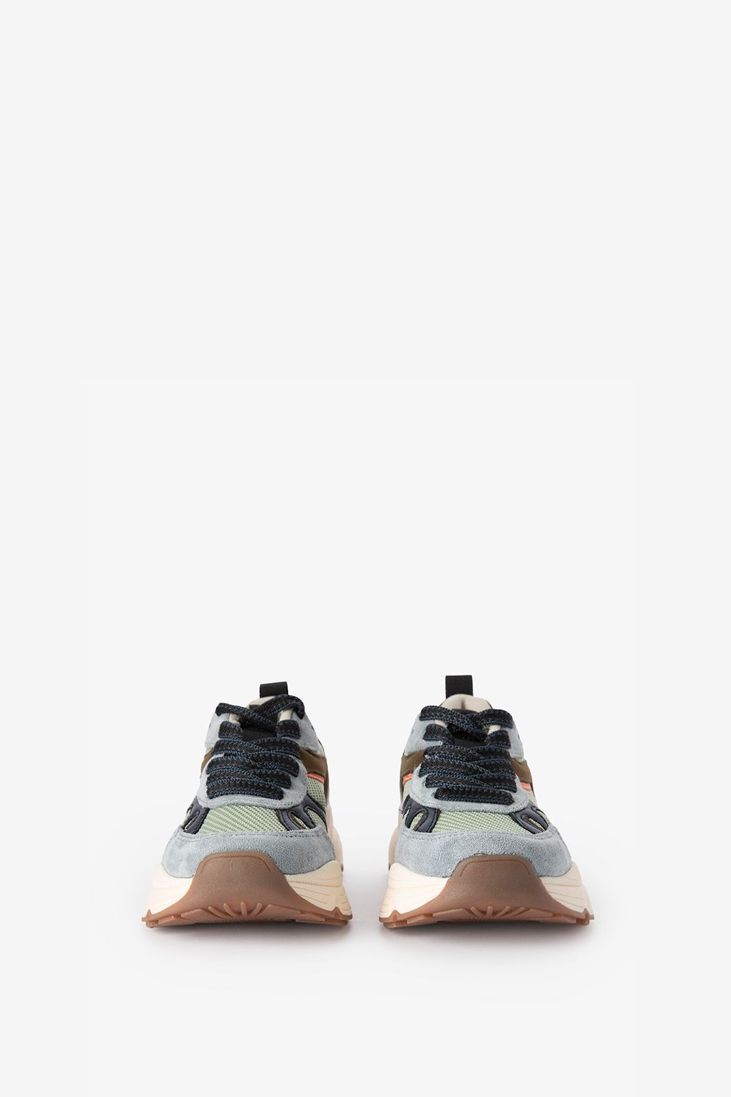 Blaue Mesh-Sneaker der Marke Sissy-Boy. Die Sneaker haben unterschiedliche Blautöne und sind mit Akzenten in Grün, Mint und Weiß abgesetzt. Die Mesh-Details, die sportliche weiße Sohle mit hohem Profil und die Schnellbindung machen den Look der Schuhe komplett. Material: 100% Polyurethan.