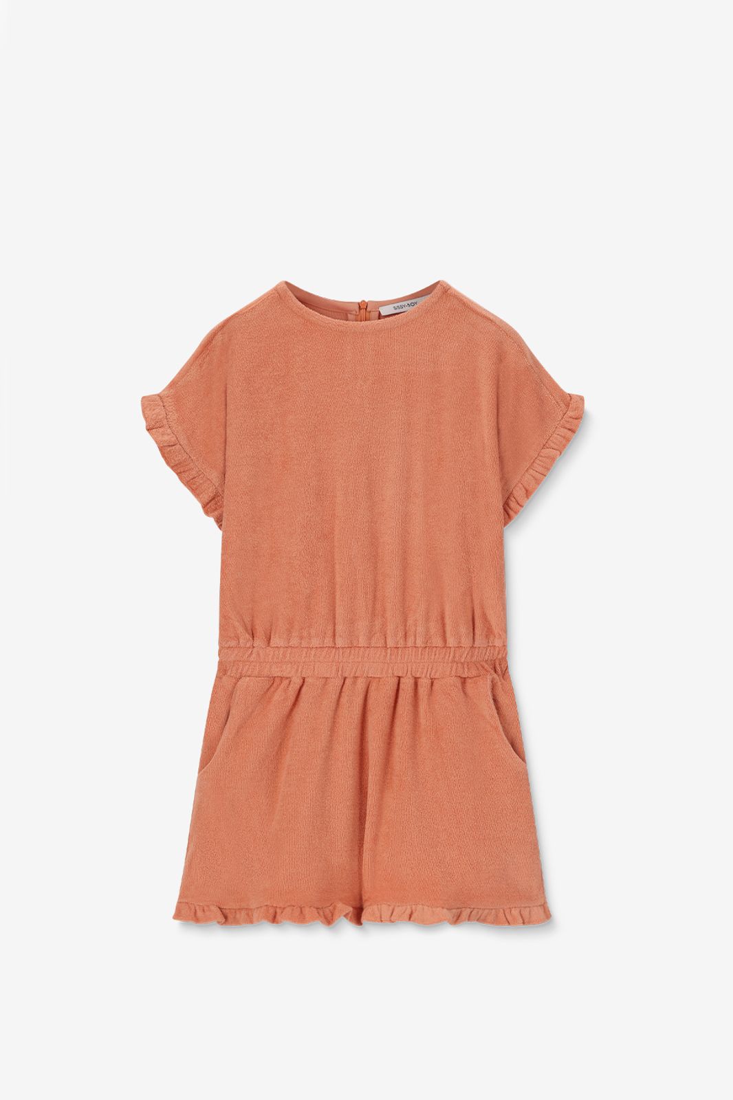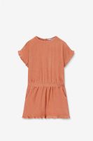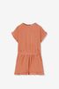 Stylisher orangefarbener Nicki-Jumpsuit der Marke Sissy-Boy. Der Jumpsuit hat einen runden Ausschnitt, kurze Ärmel mit Rüschen, eine Knopfleiste auf der Rückseite, eine reguläre Passform, Seitentaschen, einen elastischen Bund und Rüschen an den Beinabschlüssen. Das Item ist aus Nicki-Stoff gearbeitet. Material: 100% Baumwolle.